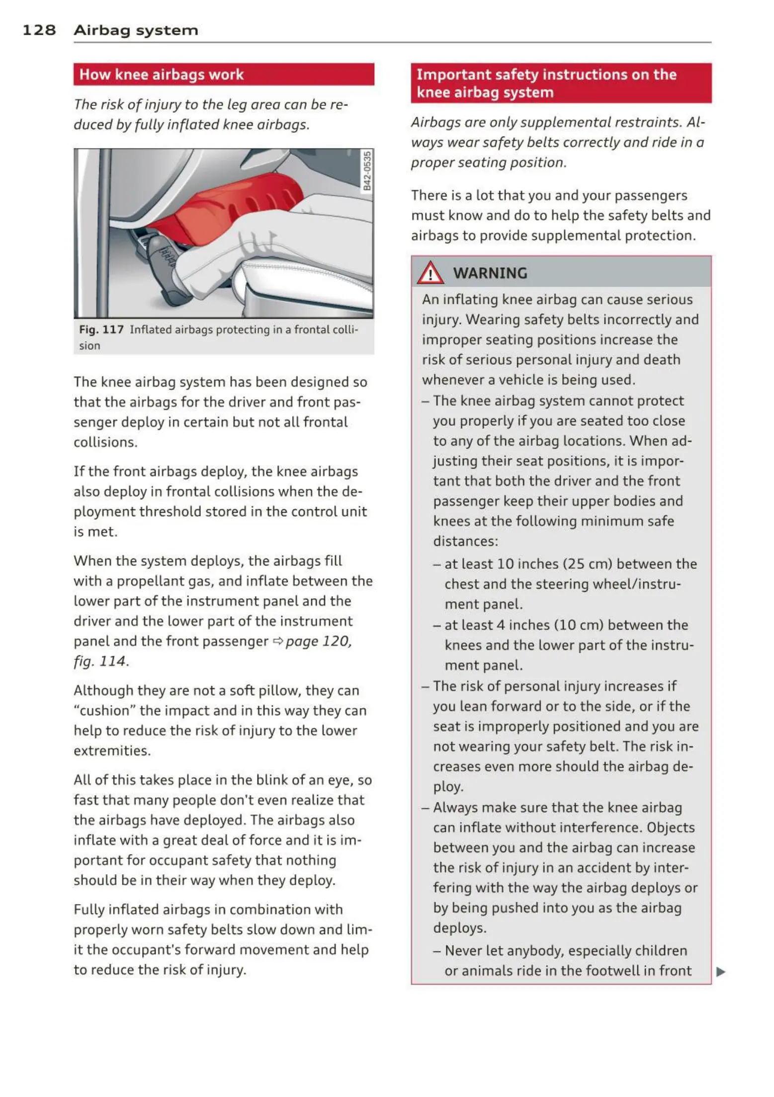 - The knee airbag system cannot protect
