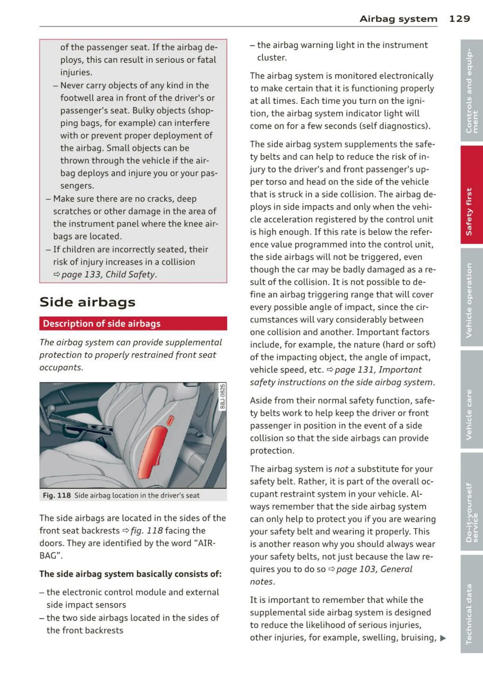 safety instructions on the side airbag system .