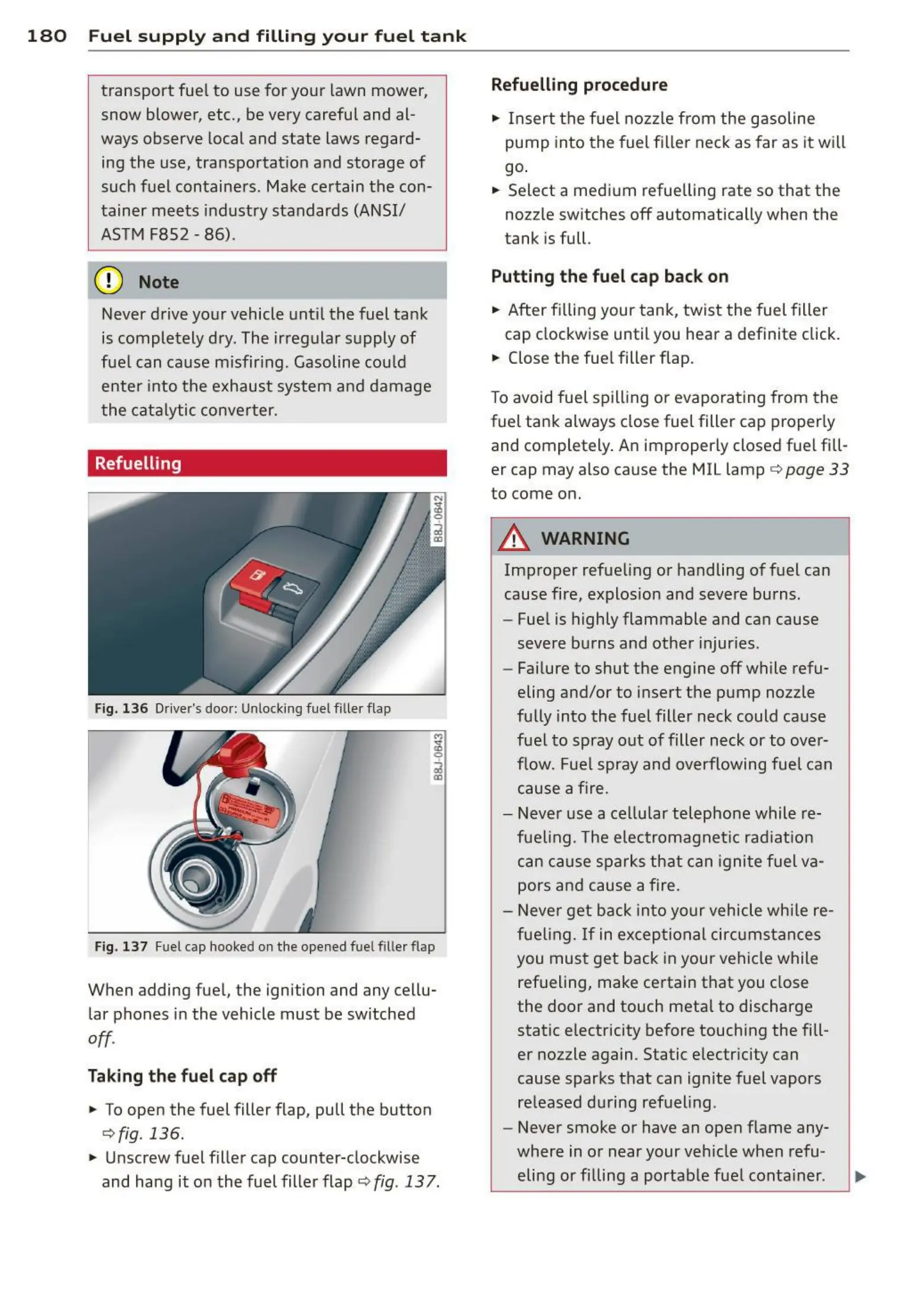 180 Fuel suppl y and filling your fuel t a nk