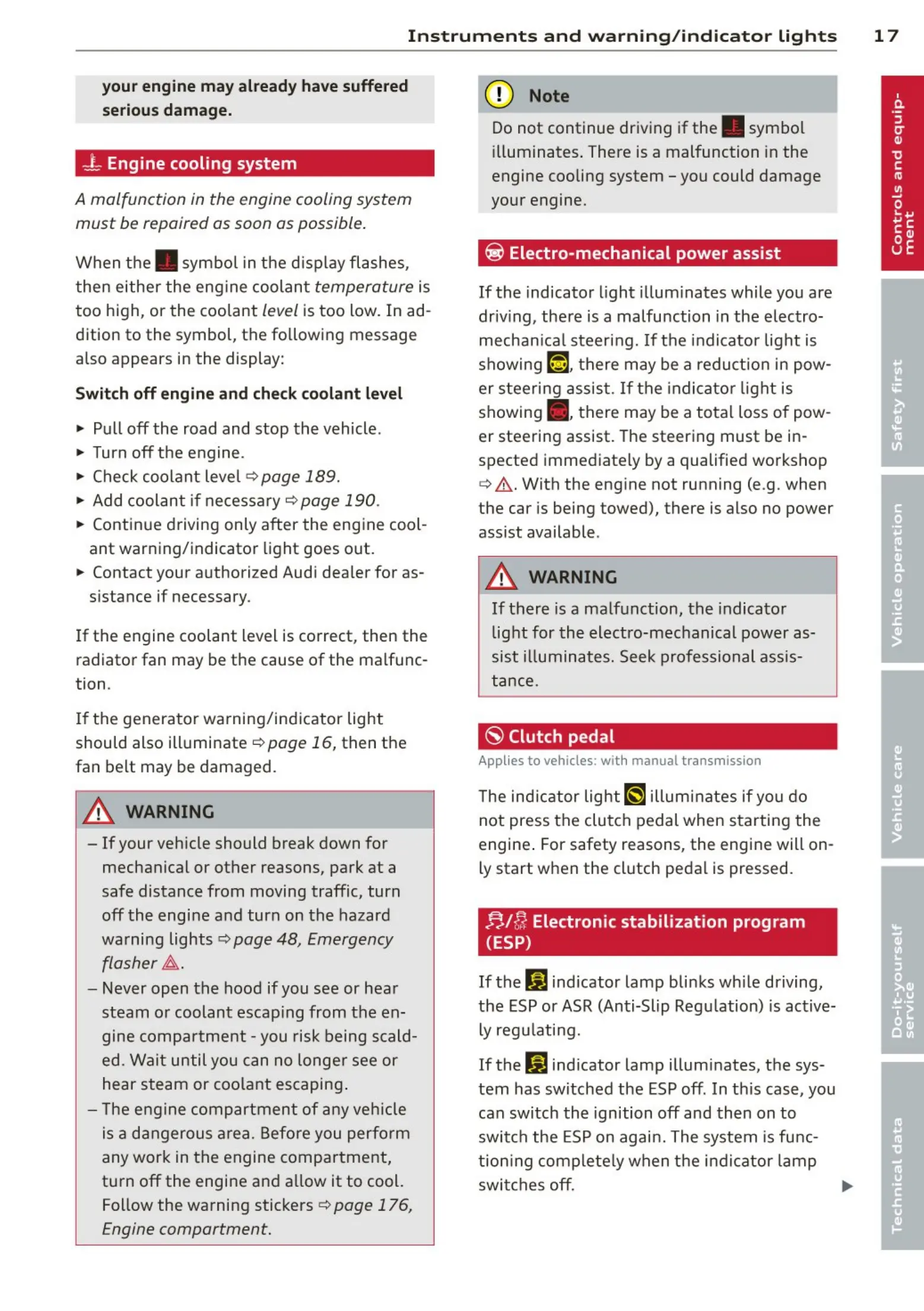In strument s and warnin g/ indic a tor ligh ts 17