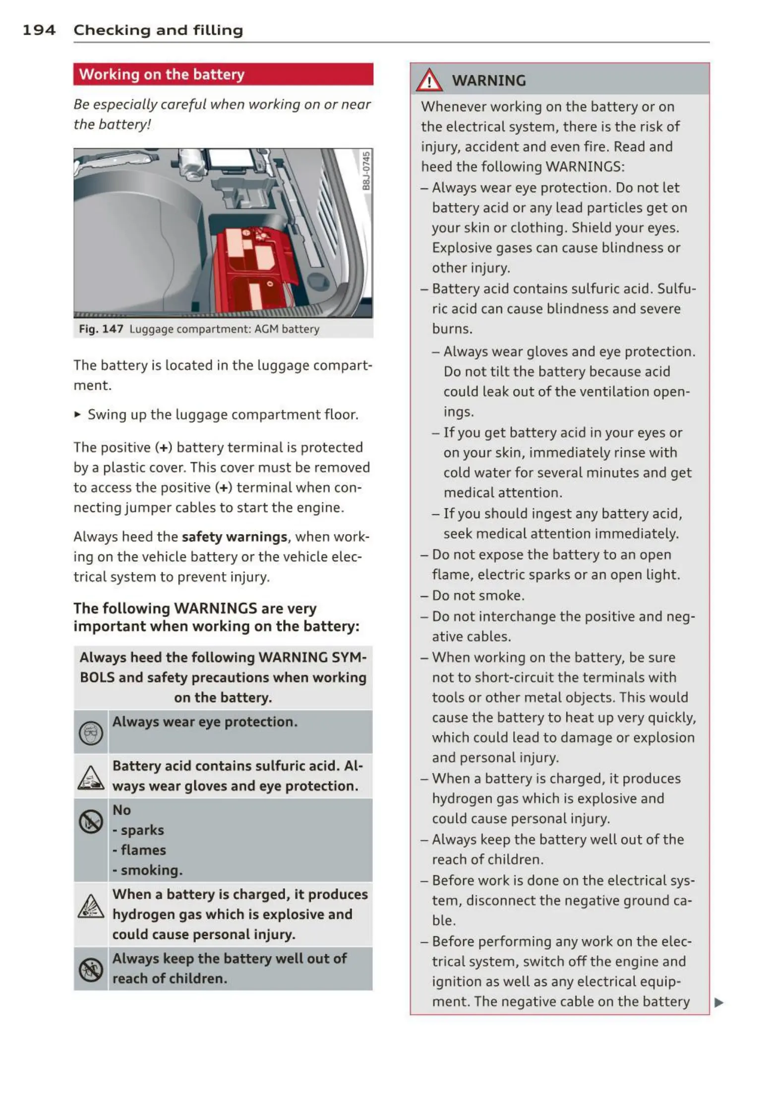 Fig. 14 7 Luggage compart ment: AGM batte ry