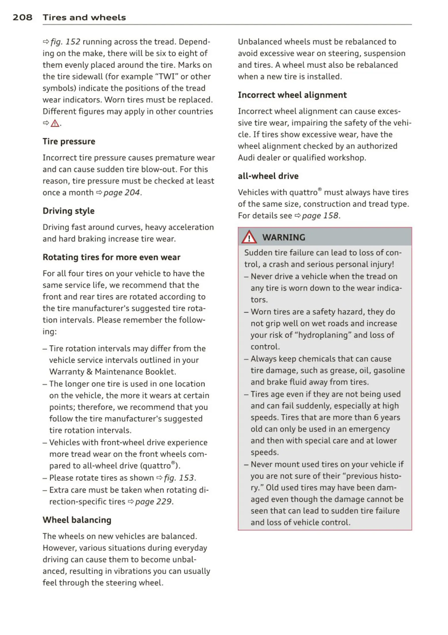 Vehicles with quattro ® must always have tires