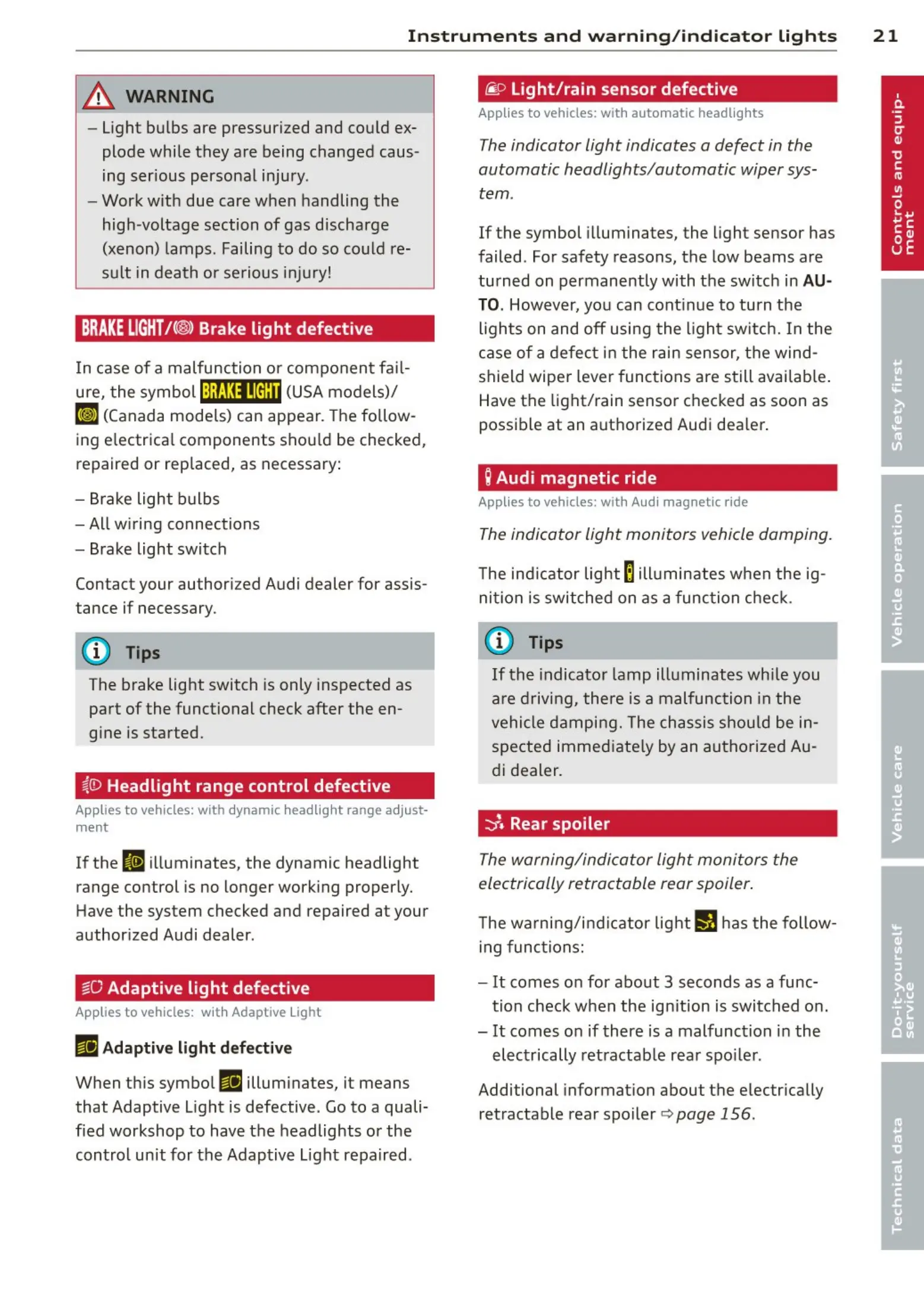 Applies to vehicles : with Audi magnetic ride