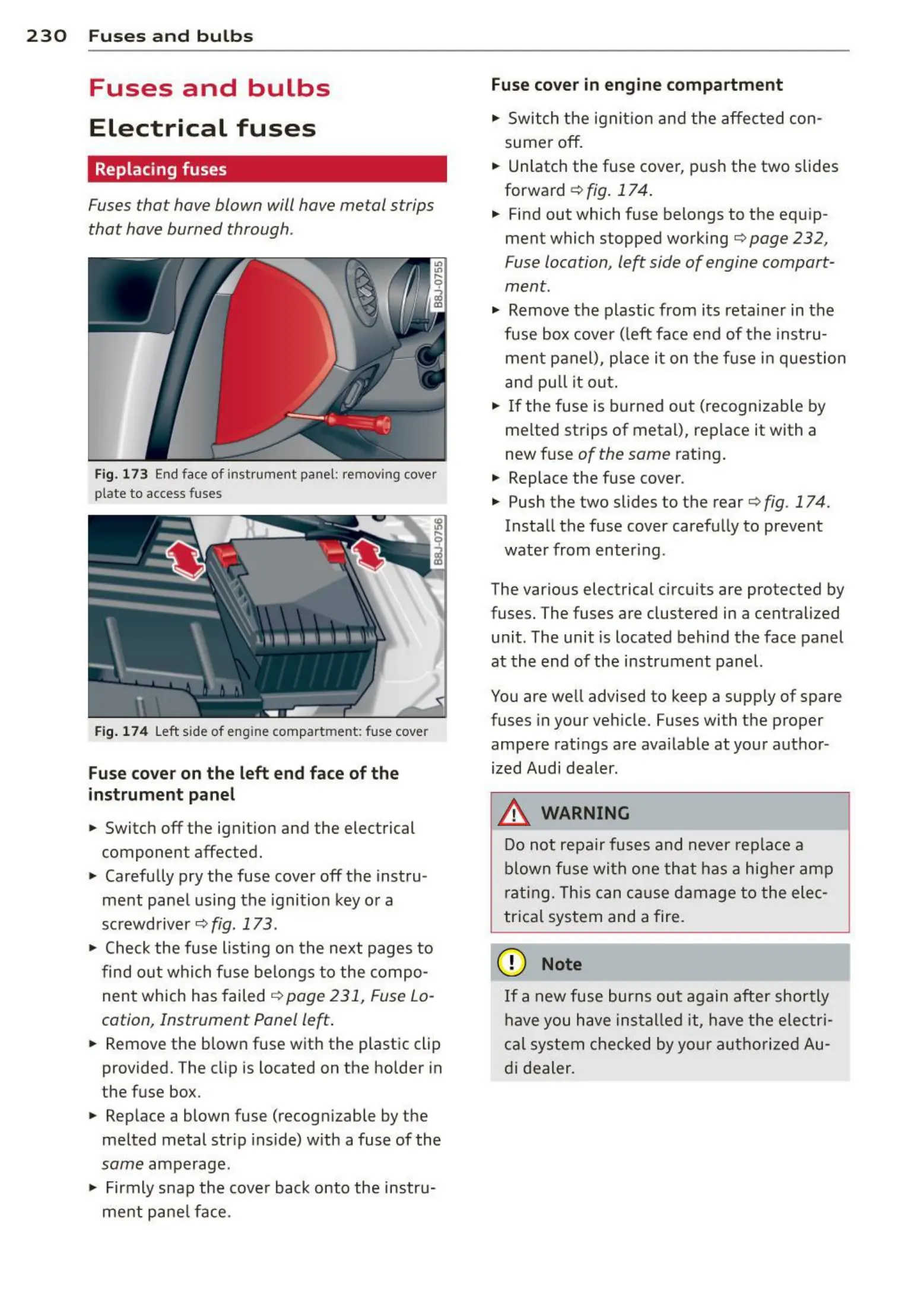 230 Fuses a nd bulbs