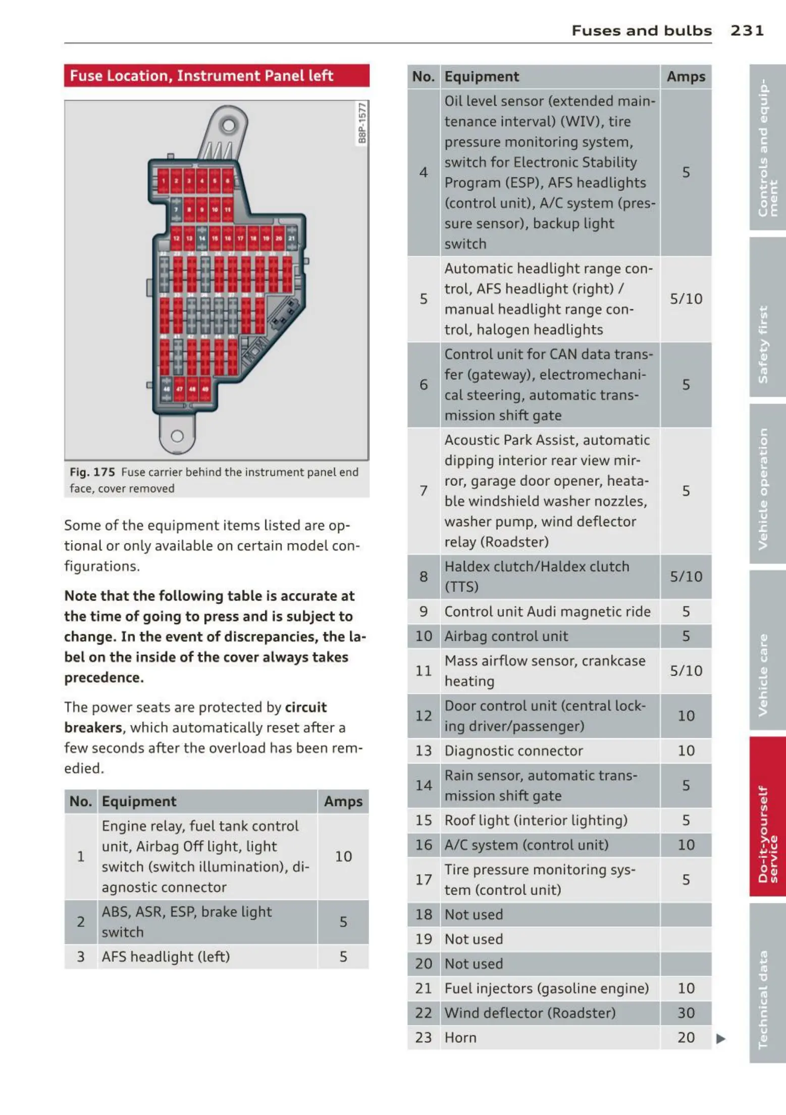 Fig. 175 Fuse carrier behin d t he instrum ent panel end
