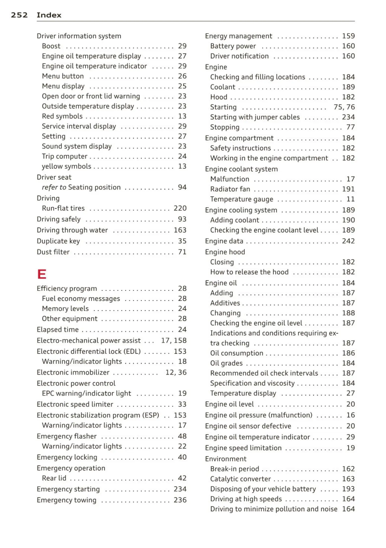 Engine oil level . . . . . . . . . . . . . . . . . . . . . . 20