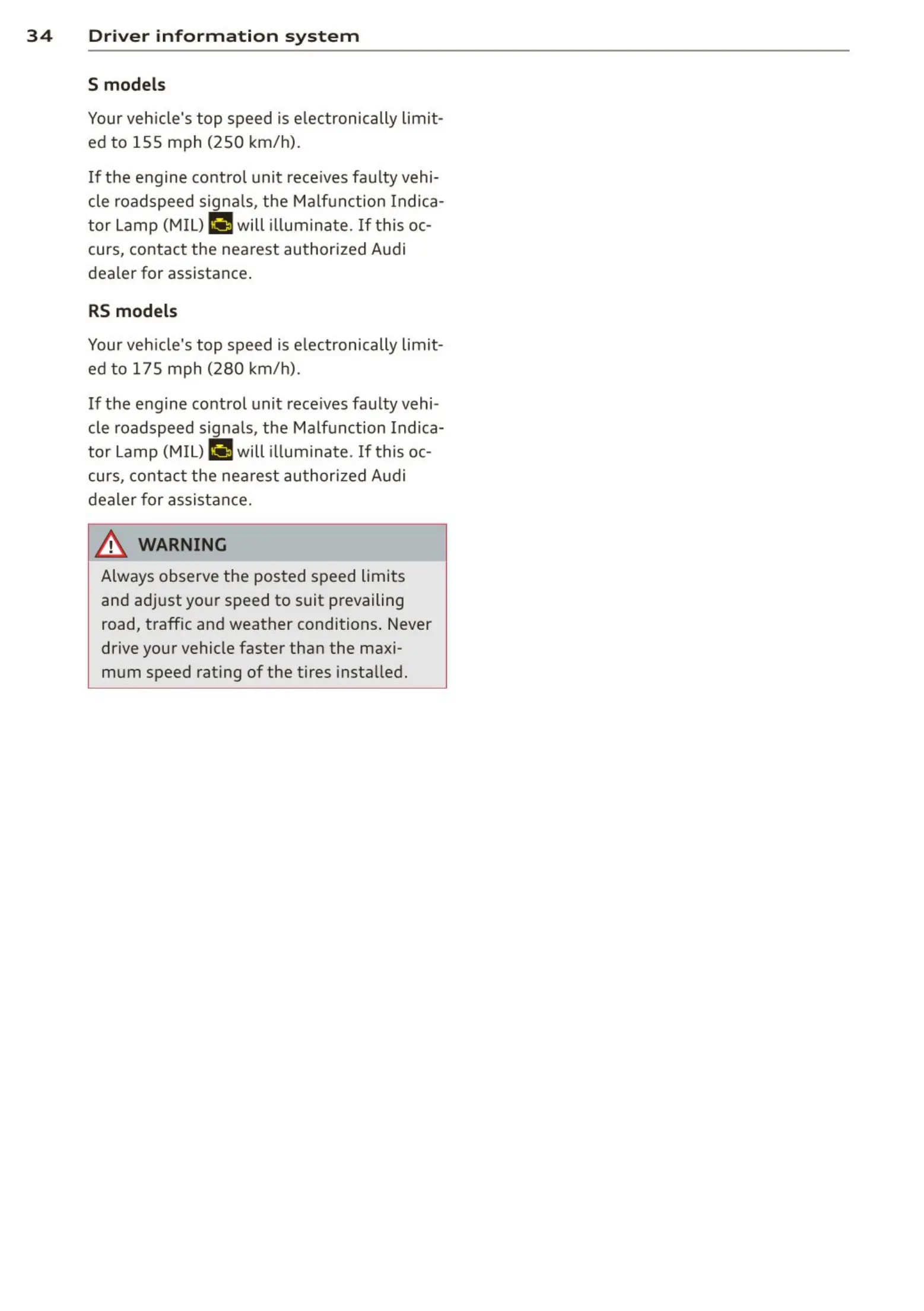 Your veh icle's top speed is e lectronically limit-
