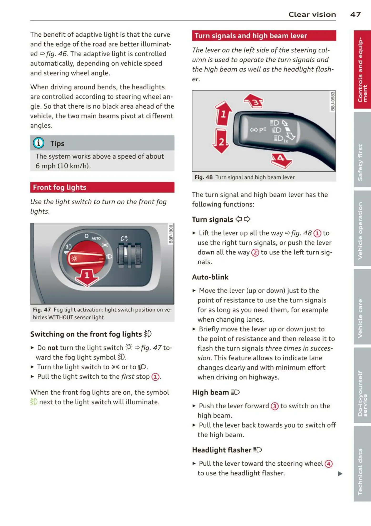 Fig. 4 7 Fog light activat ion: light switch position on ve·