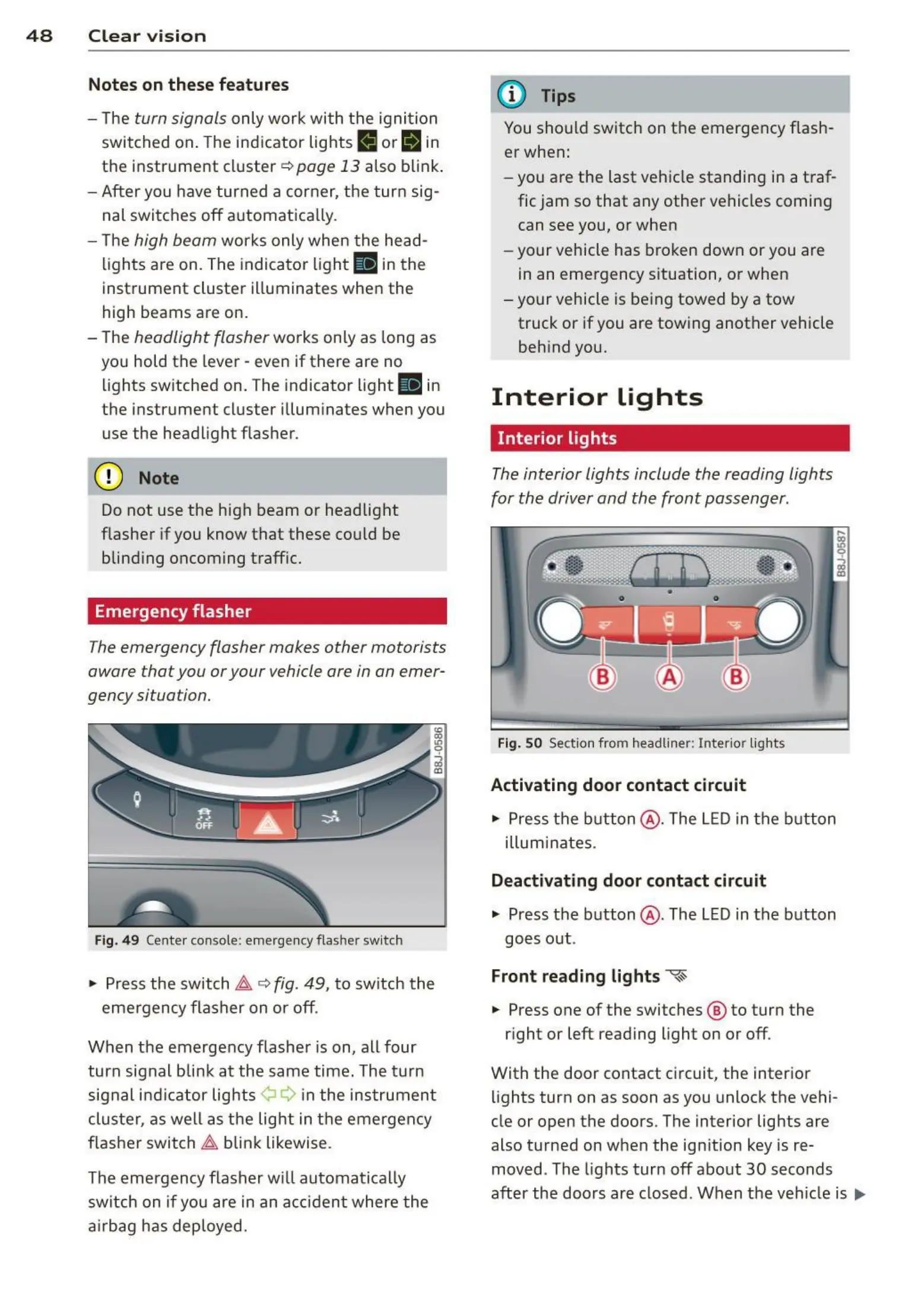 Fig. 4 9 Center console: emerge ncy flas her switch