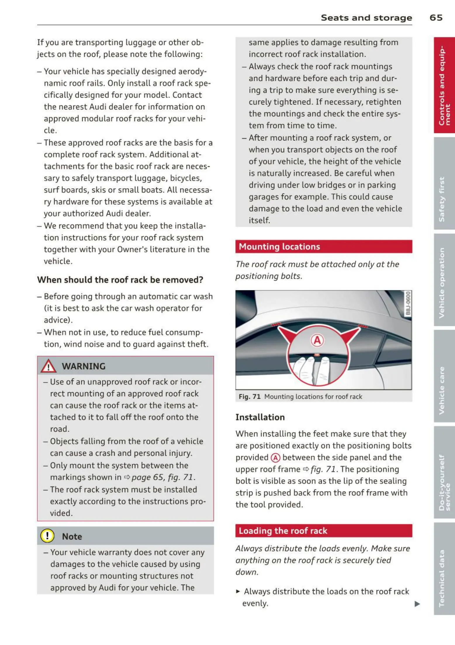 Fig. 71 Mounting locat ions for roof rack