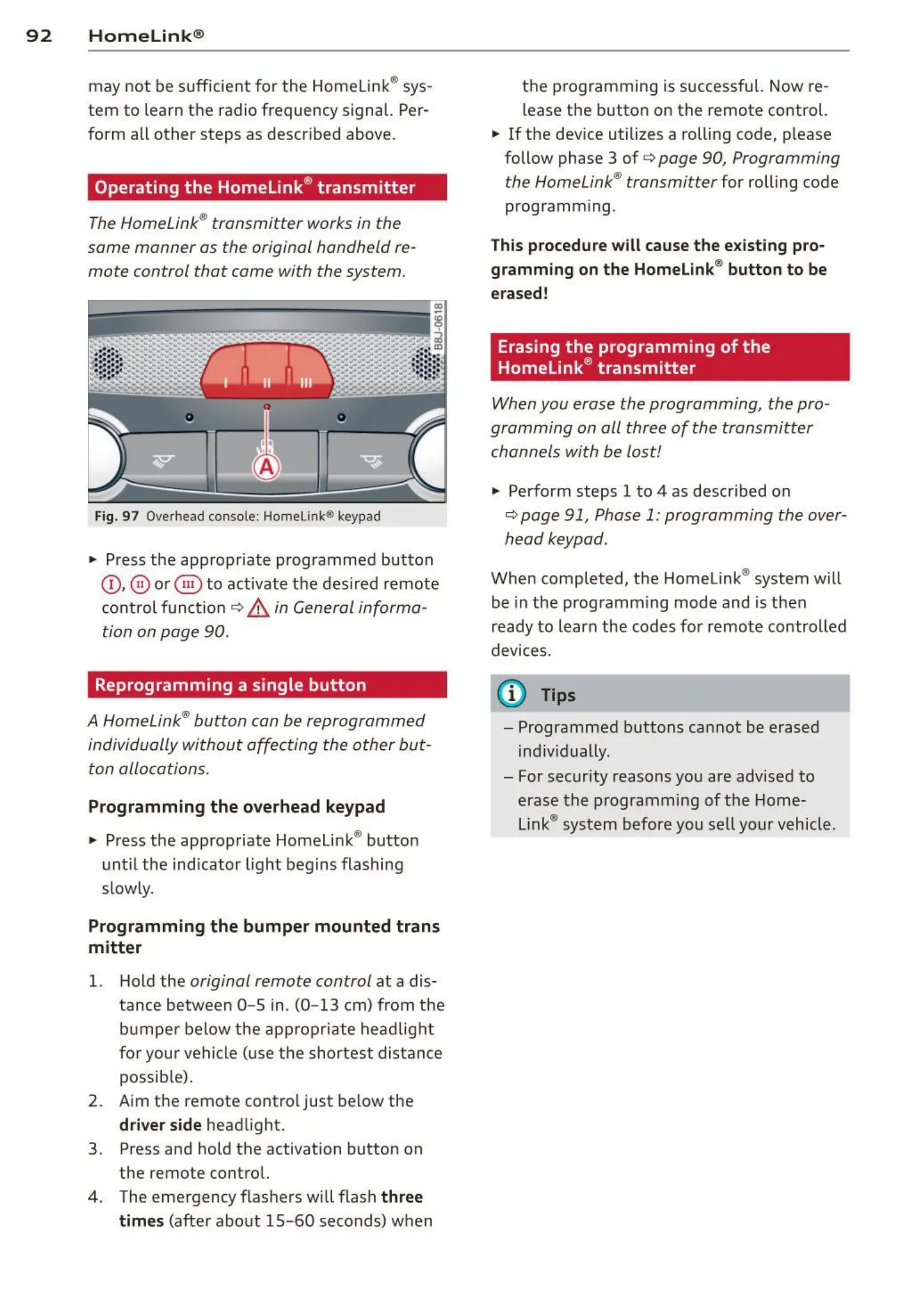 Fig. 97 Overhead console: Home lin k® keypad