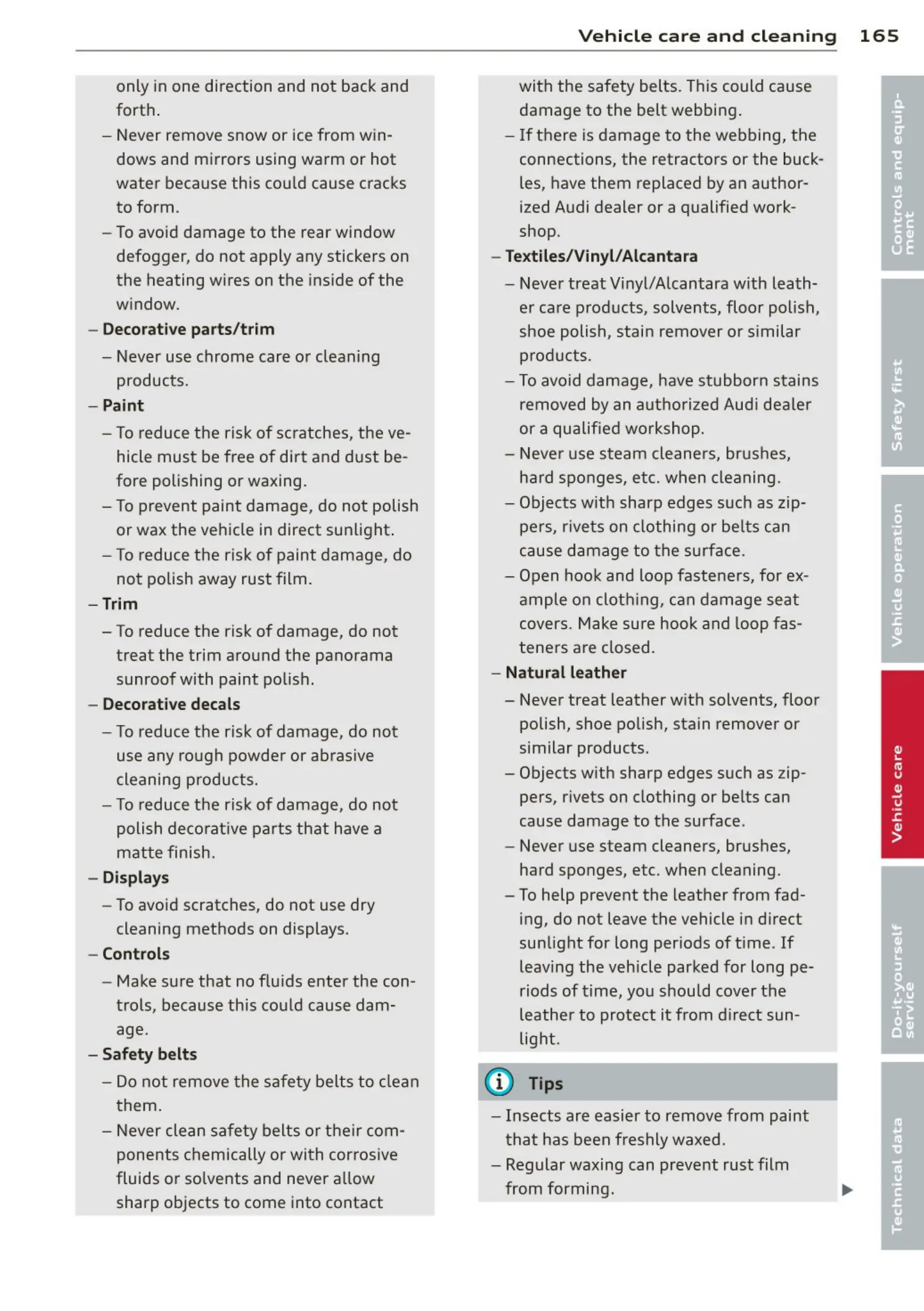 Ve hicl e c a re a nd cl ea nin g 165