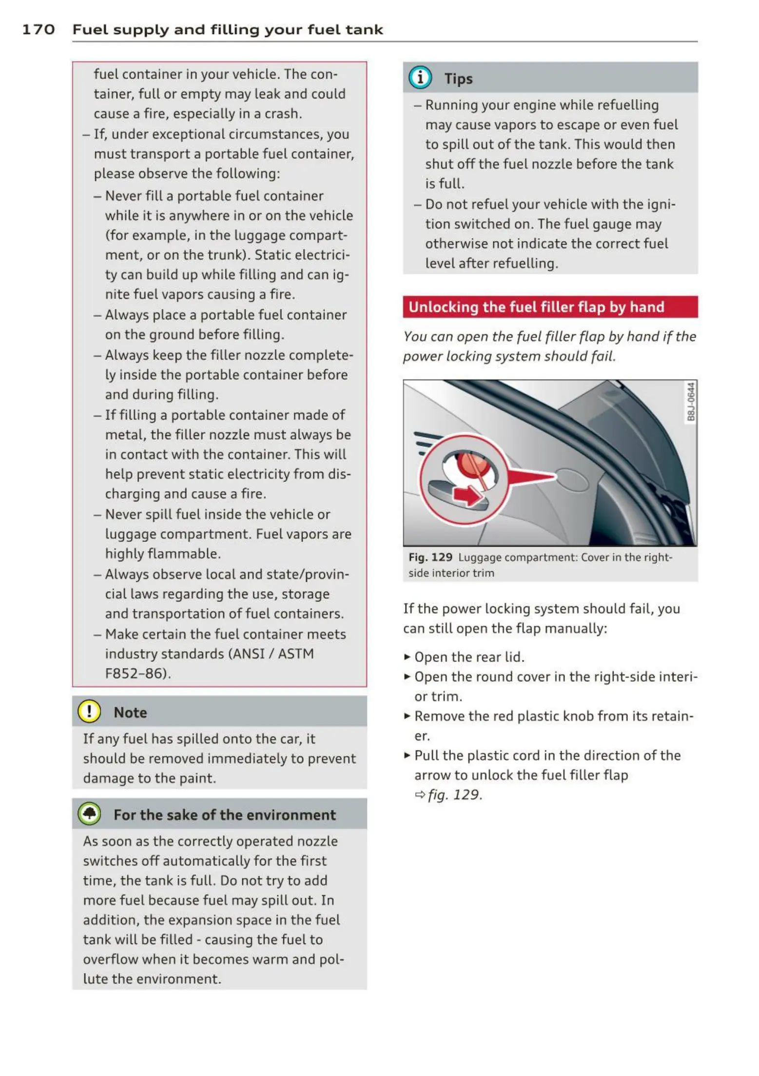 arrow to unlock the fuel fi ller flap