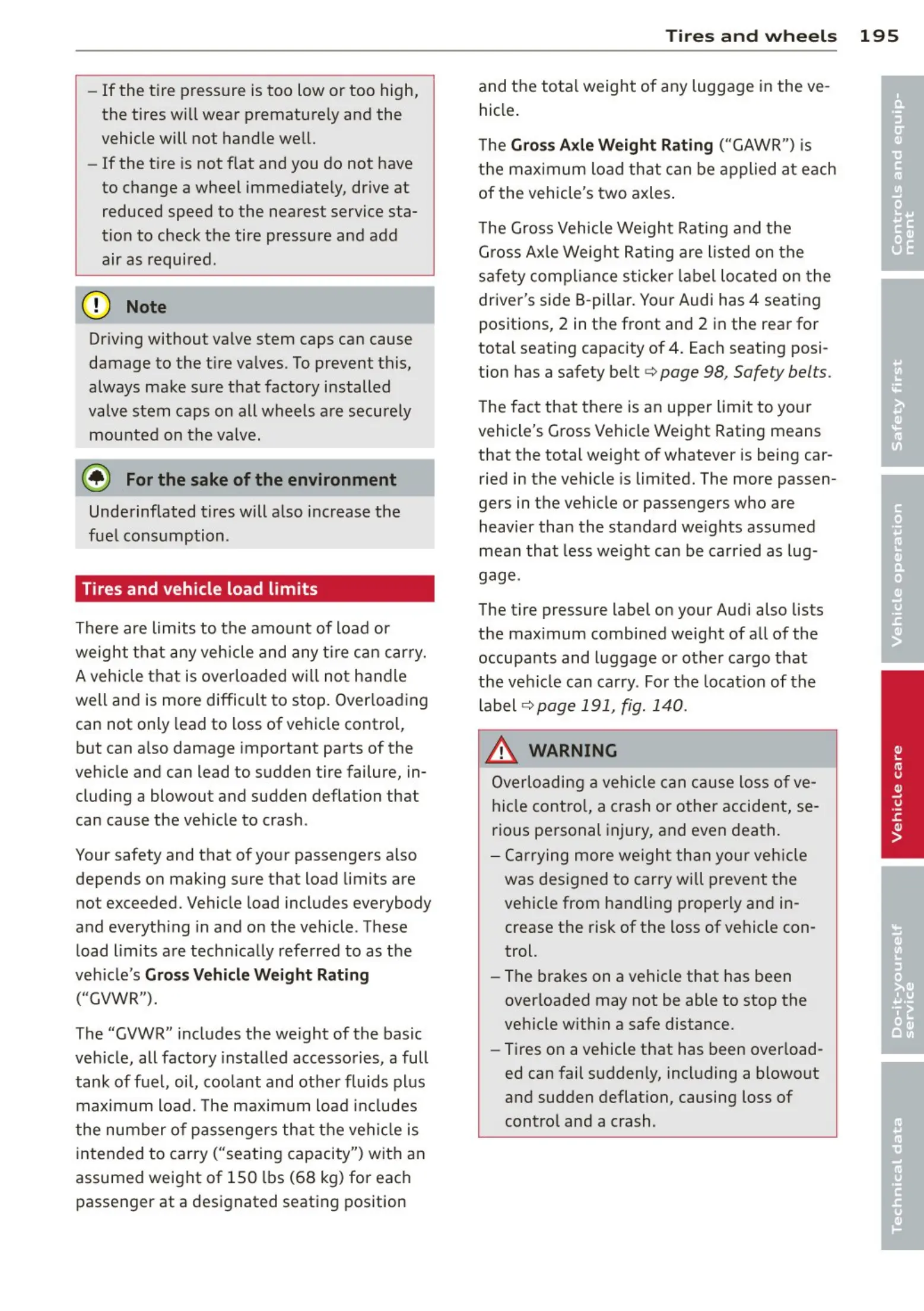 Tires and vehicle load limits