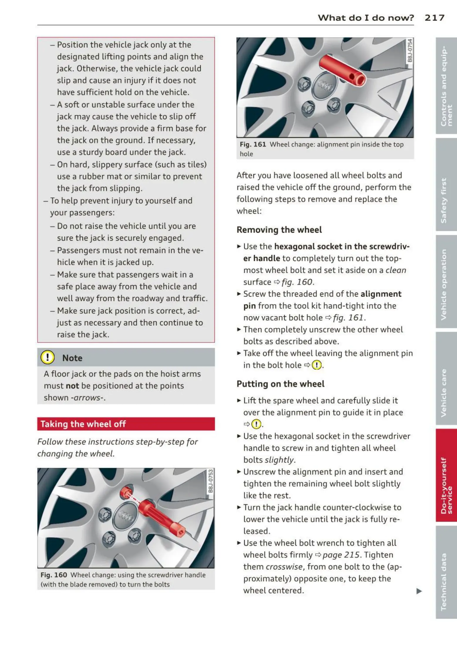 Fig. 16 0 Wheel change: us ing t he screwd river handle