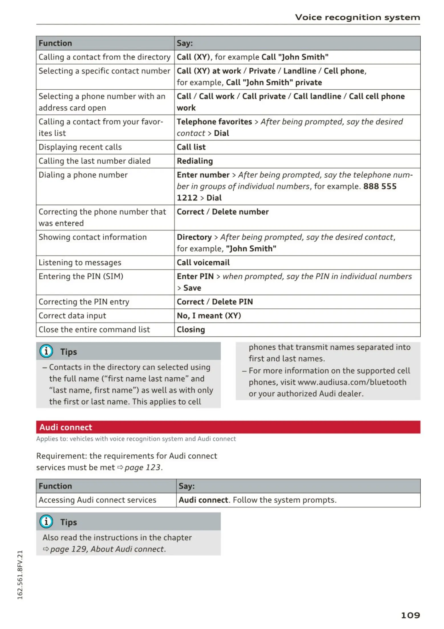 Applies to: vehicles with voice recognition system and Audi connect