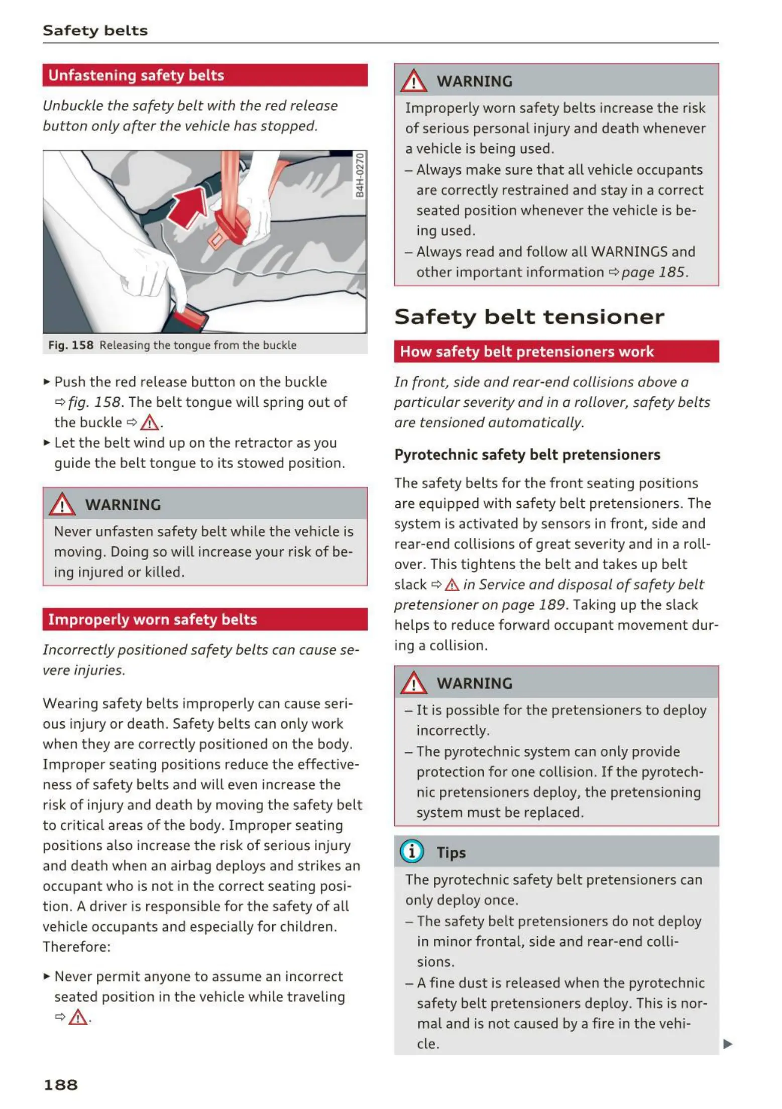 pretensioner on page 189 .