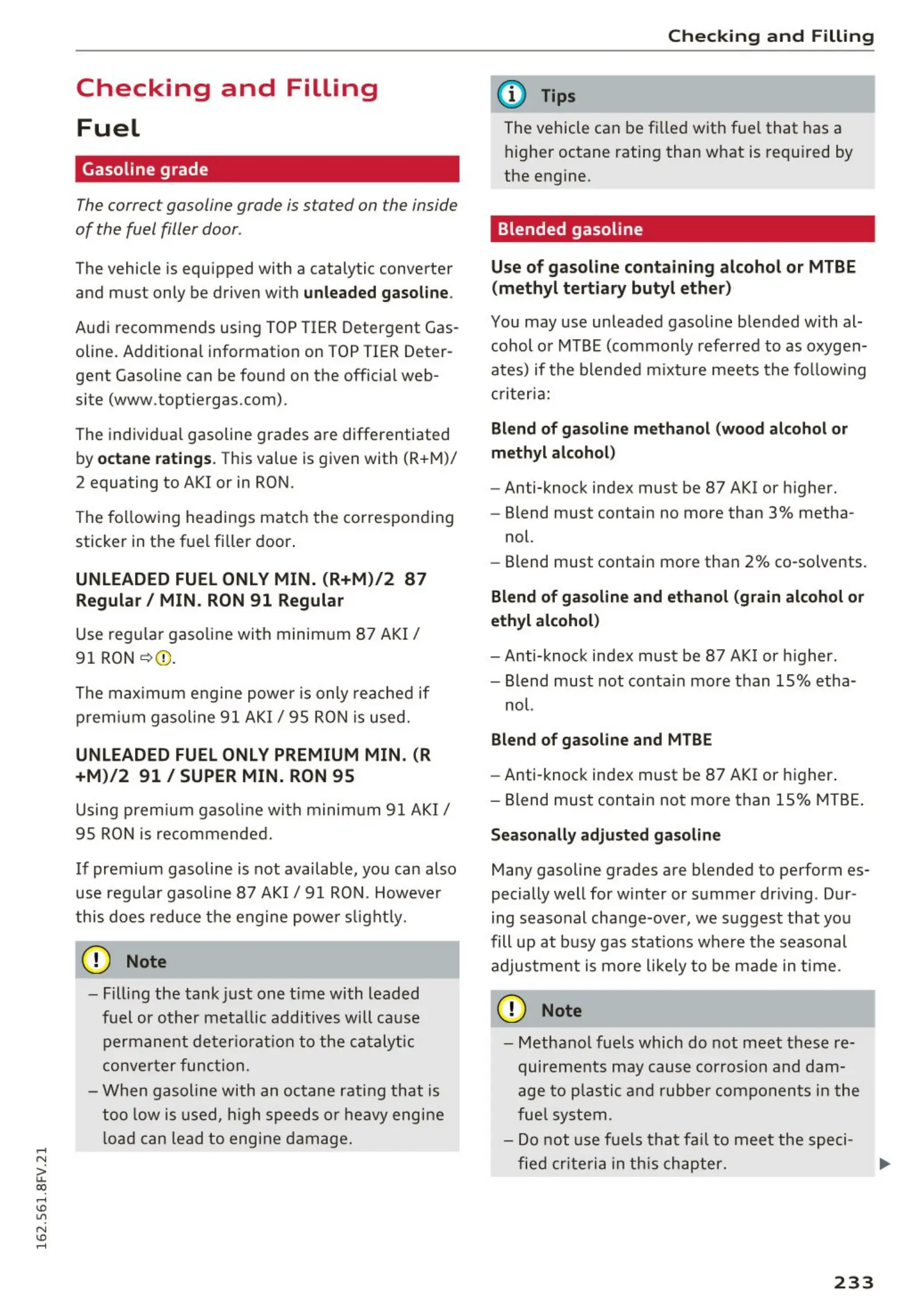 Aud i recommends using TOP TIER Detergent Gas-