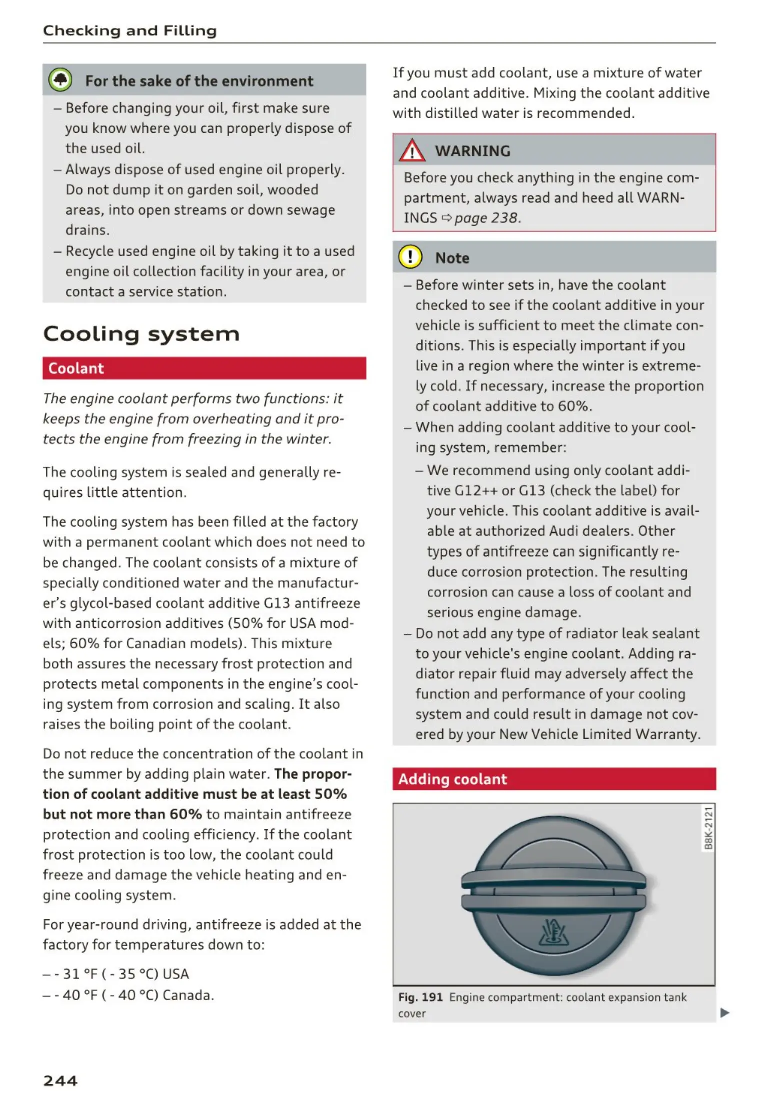 - We recommend using only coolant addi-