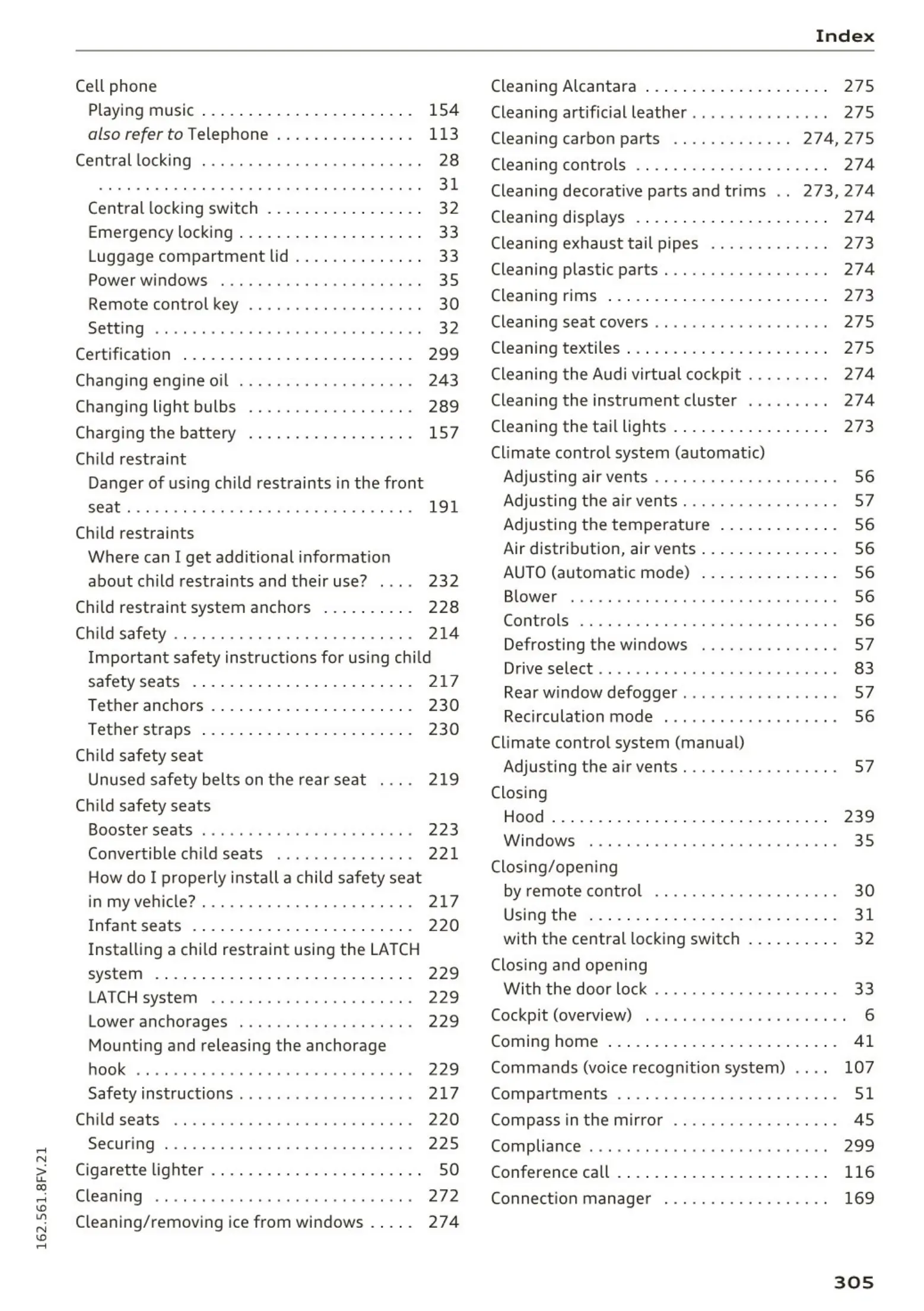 Child seats . . . . . . . . . . . . . . . . . . . . . . . . . . 220