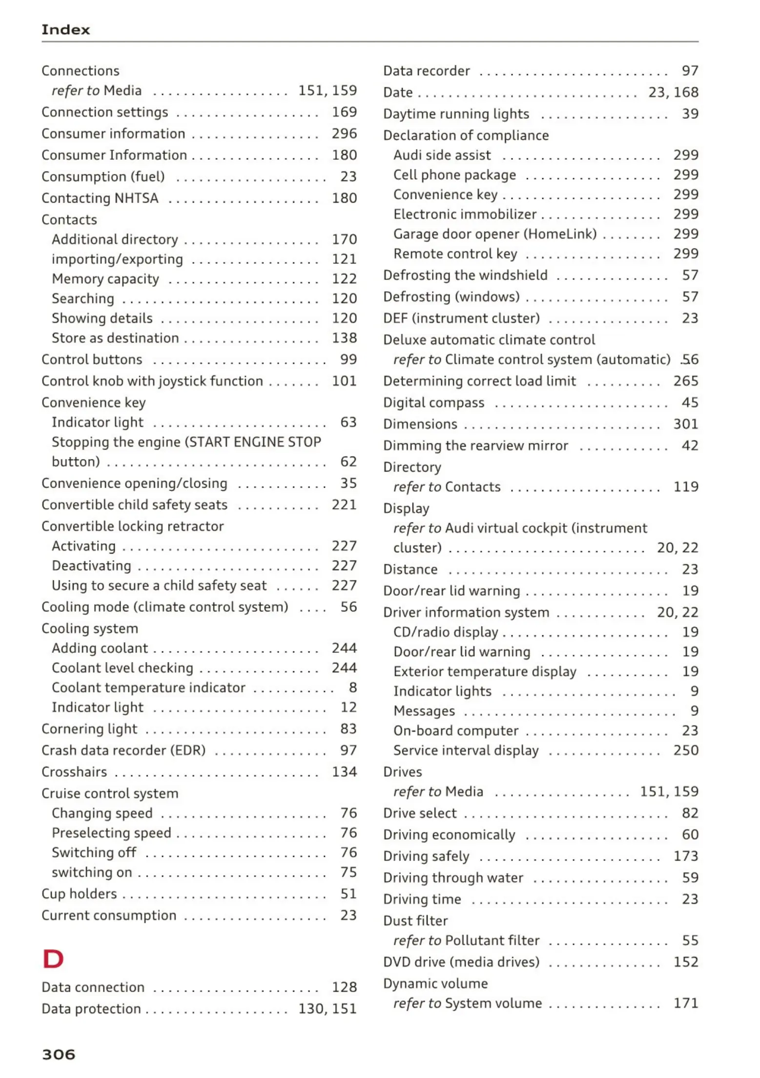 Audi side assist . . . . . . . . . . . . . . . . . . . . . 299