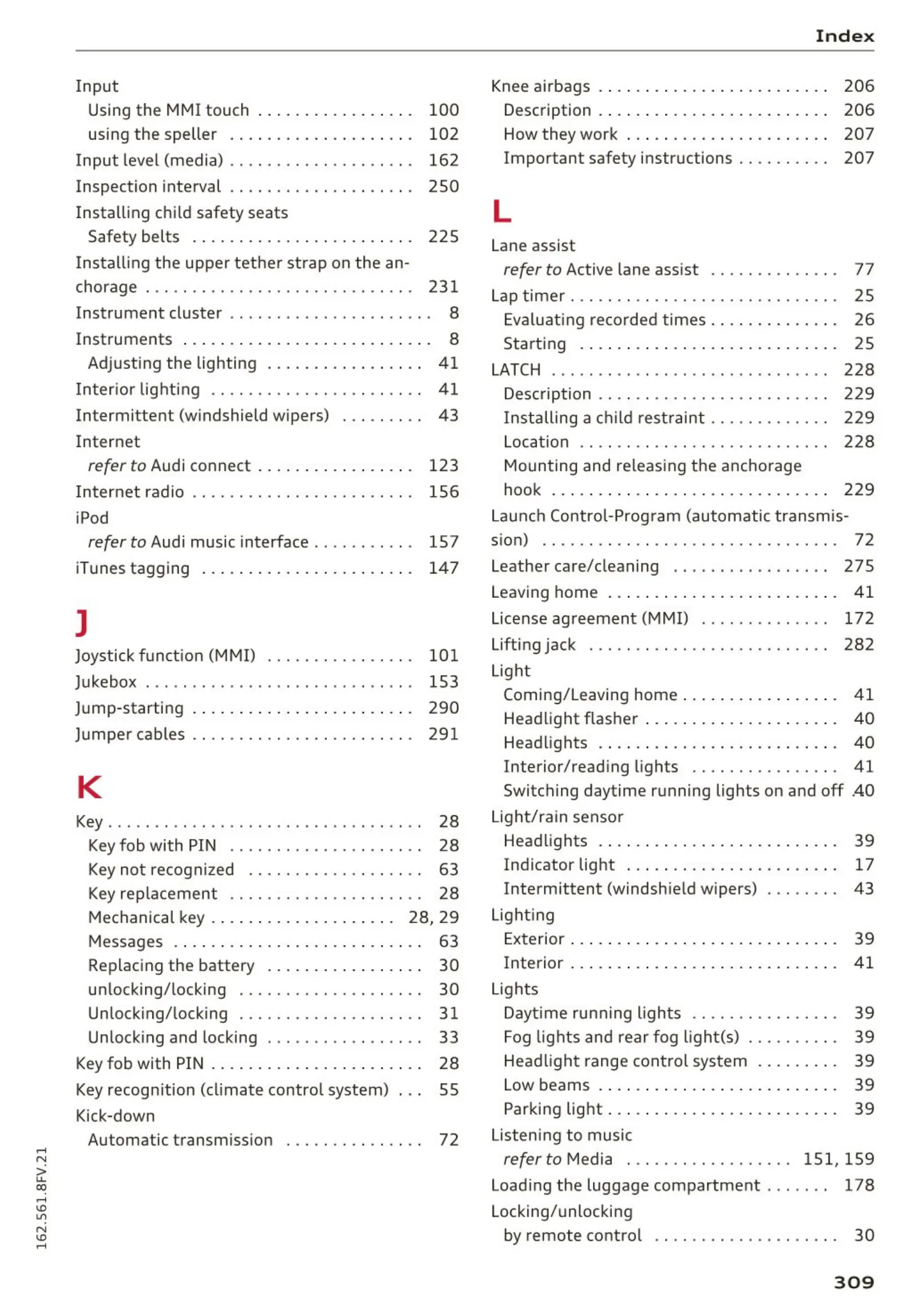 Knee airbags . . . . . . . . . . . . . . . . . . . . . . . . . 206