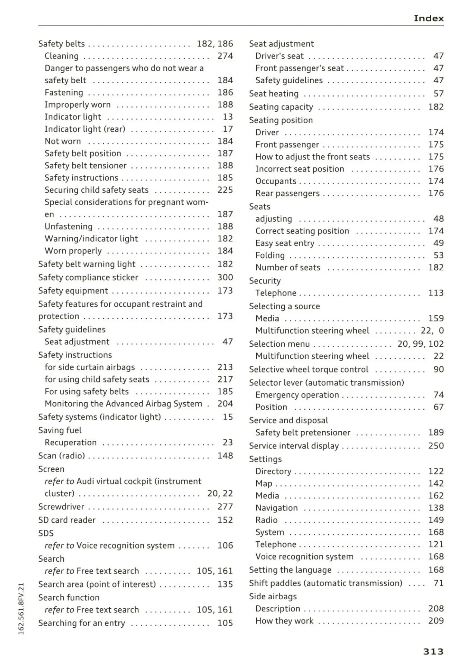 Safety belt position . . . . . . . . . . . . . . . . . . 187