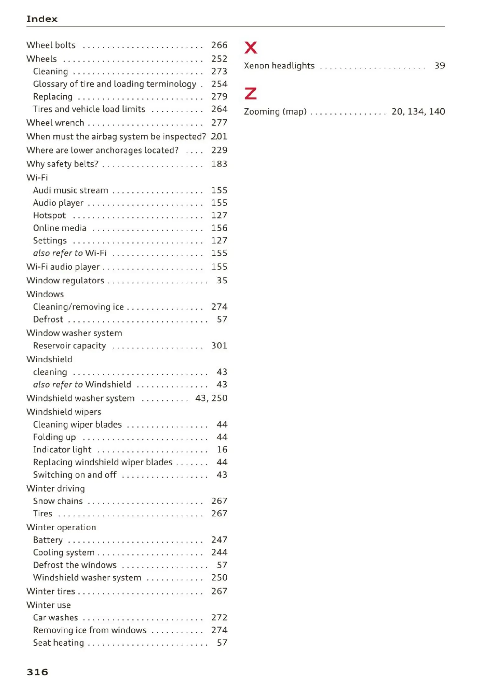 W inter tires . . . . . . . . . . . . . . . . . . . . . . . . . . 267
