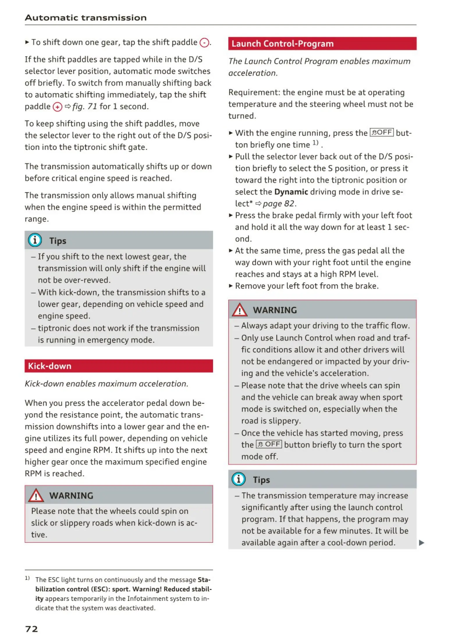 bilization control (ESC): sport. Warning! Reduced stabil-
