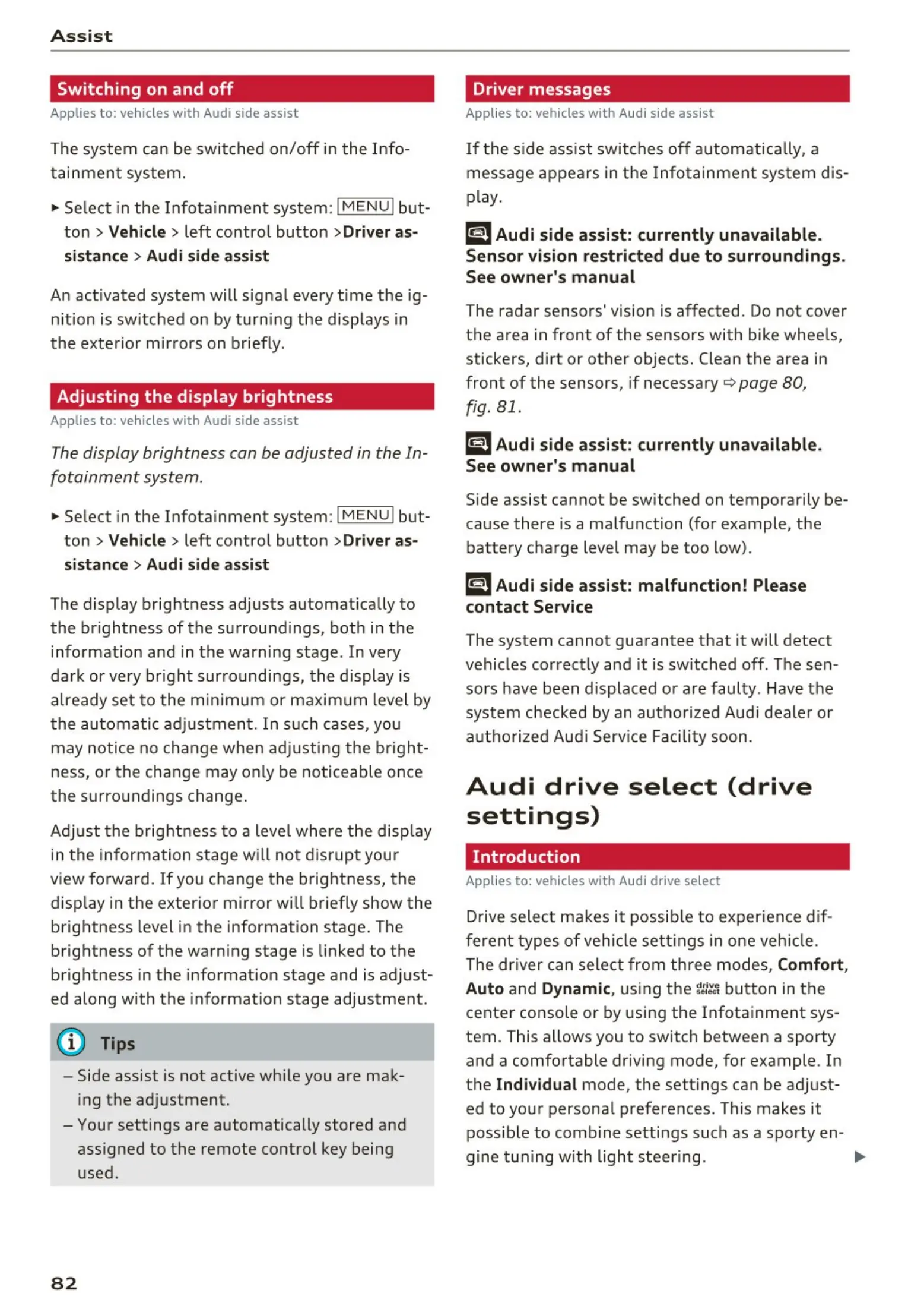 Appli es to: vehicles with Audi side assist