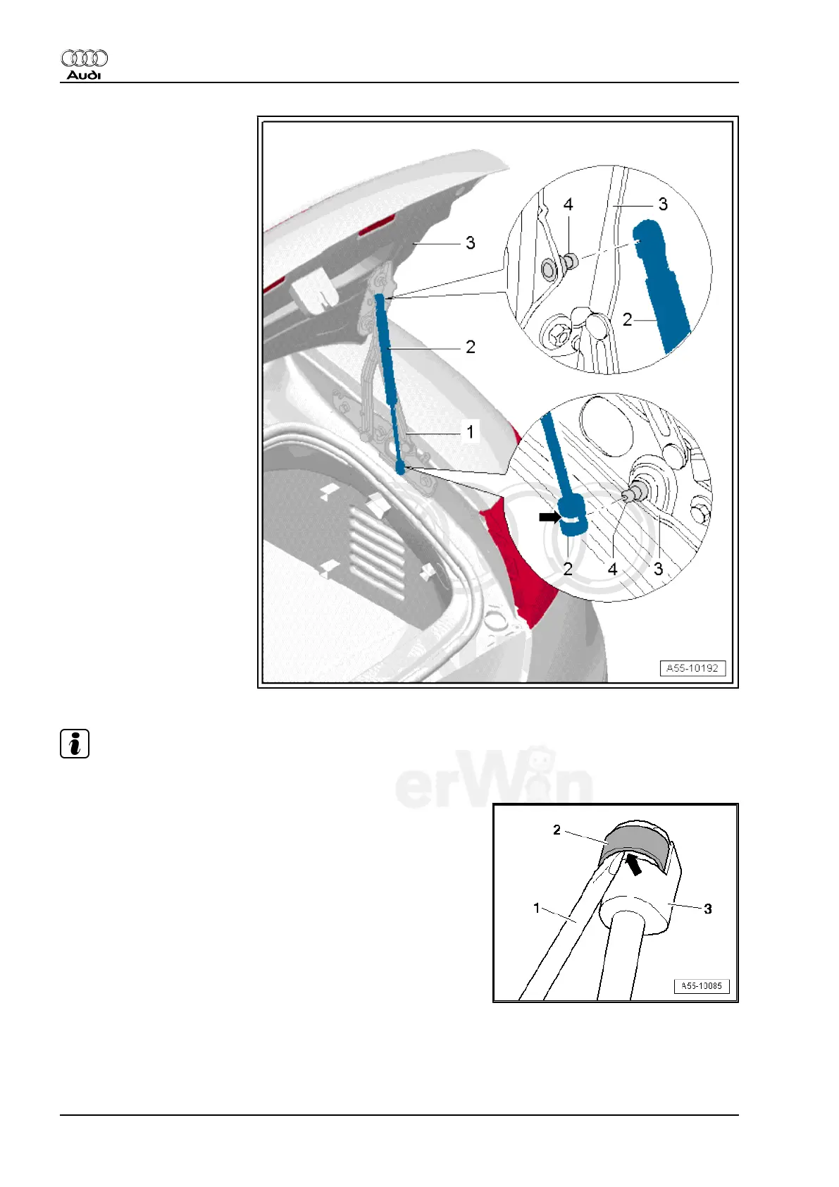– Detach the gas-filled strut for the rear lid by lifting retaining