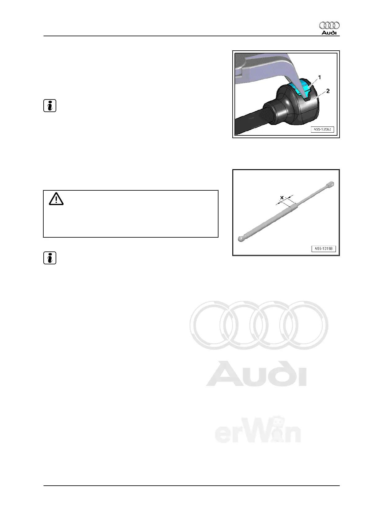 – Press gas-filled strut onto ball stud, first at bottom and then at