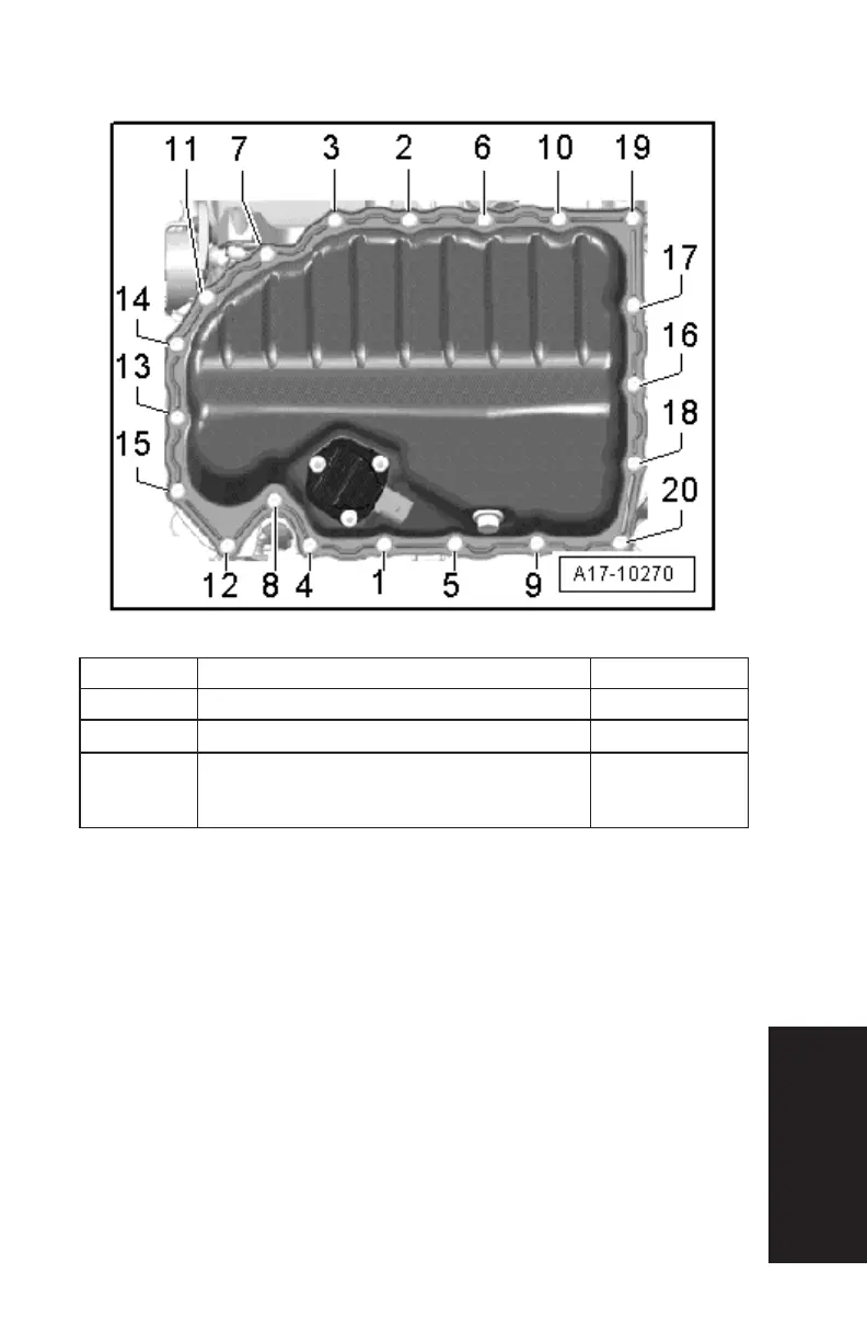3 Tighten bolts 1 - 20 in sequence Tighten an