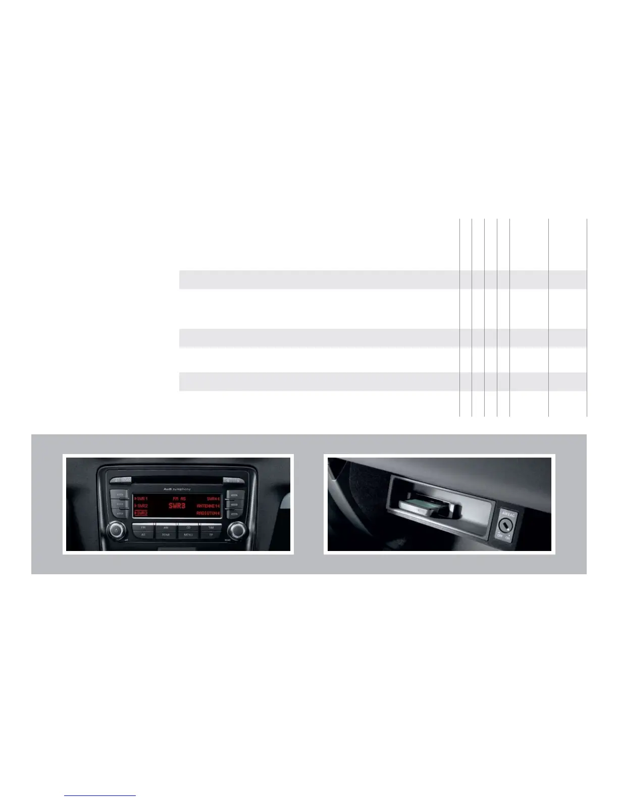CD changer. For six CDs with MP3 compatibility. Cannot be combined with iPod or USB