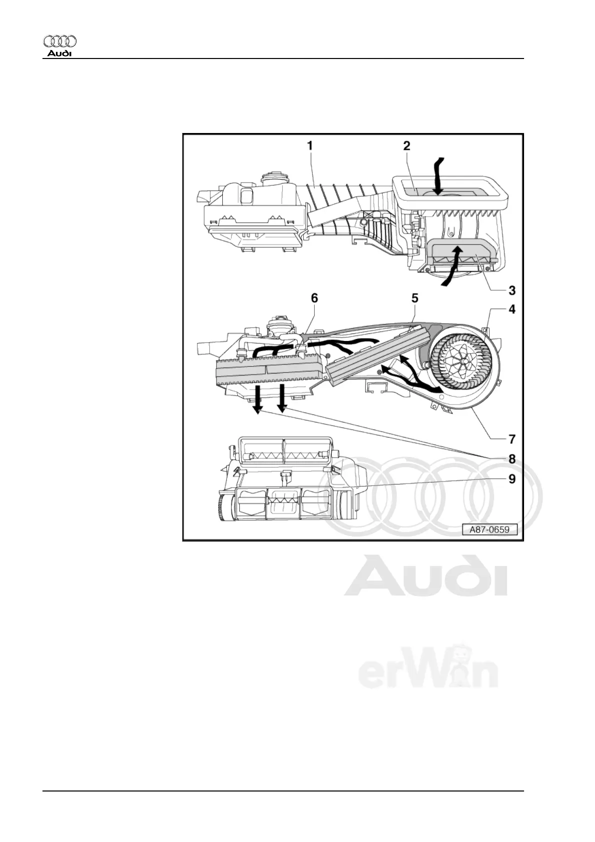 ❑ Air guide channel lower section, vehicles without A/C (with heating only).