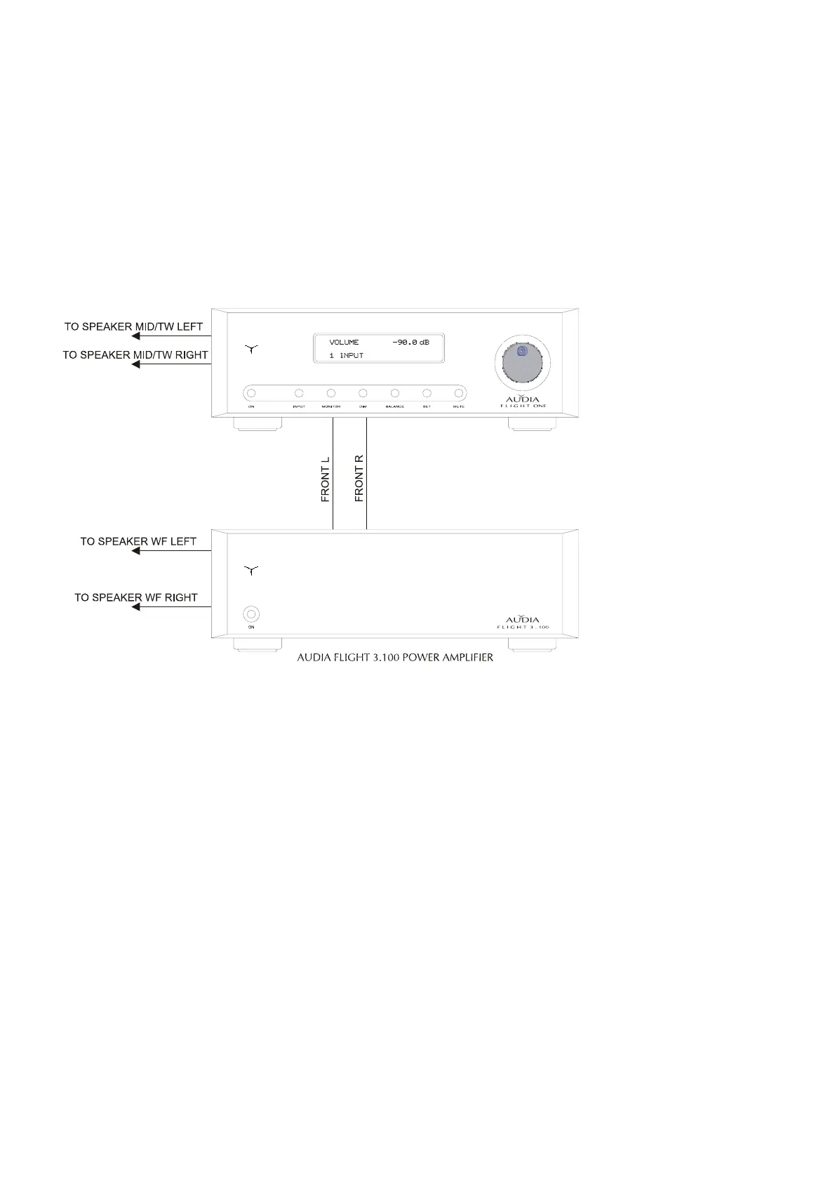 channels of the AUDIA Flight 3.100 amplifier, which exploits three power amplifiers exactly