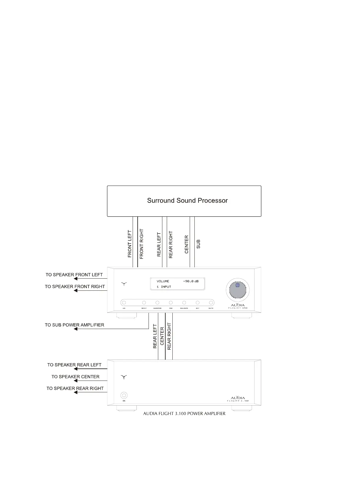 centrale potranno essere amplificati dall’eventuale amplificatore finale a tre canali AUDIA