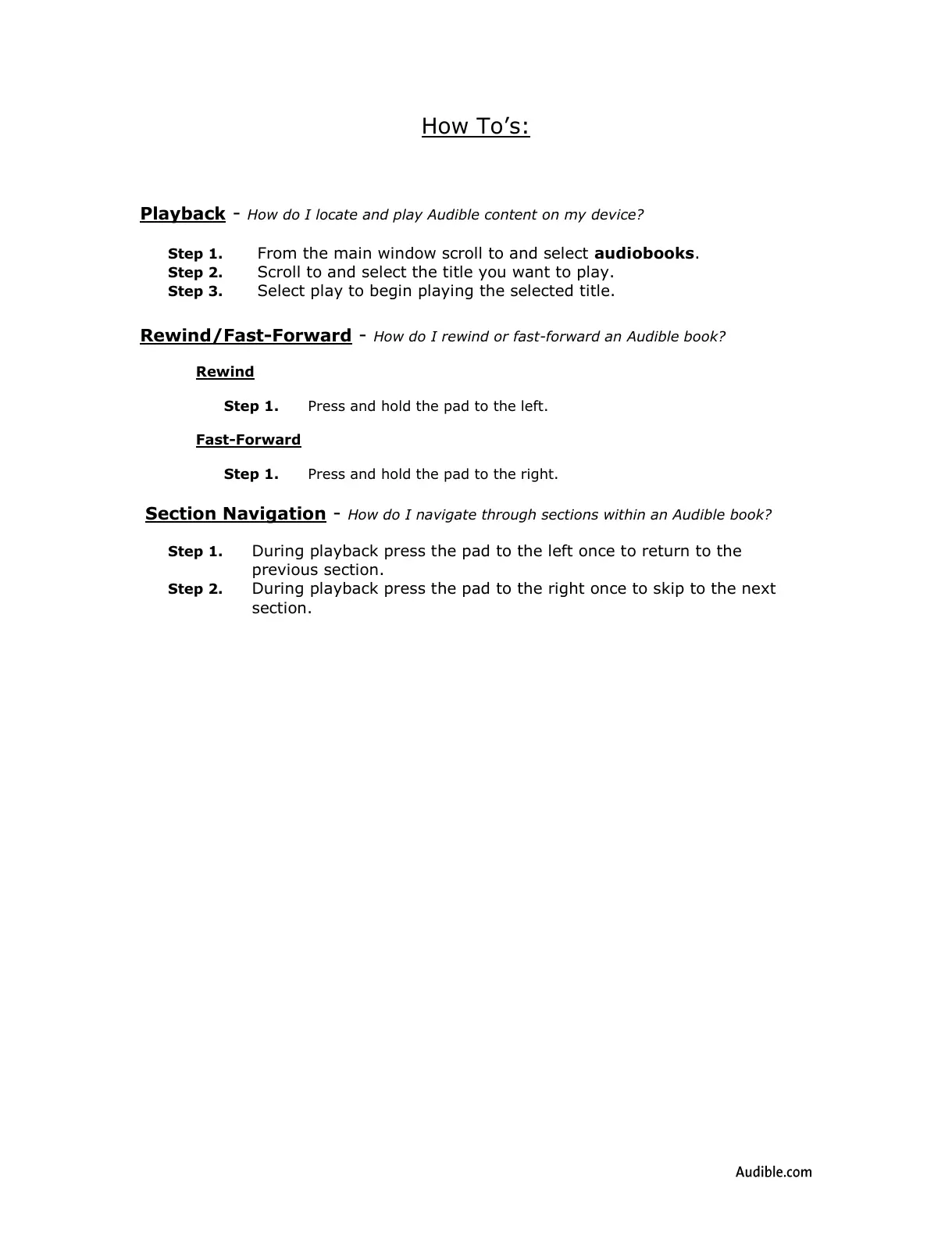 Section Navigation - How do I navigate through sections within an Audible book?