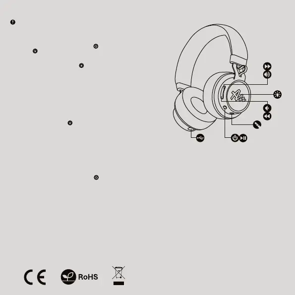 • Turn on the headphones by holding down the button for 10 seconds. The