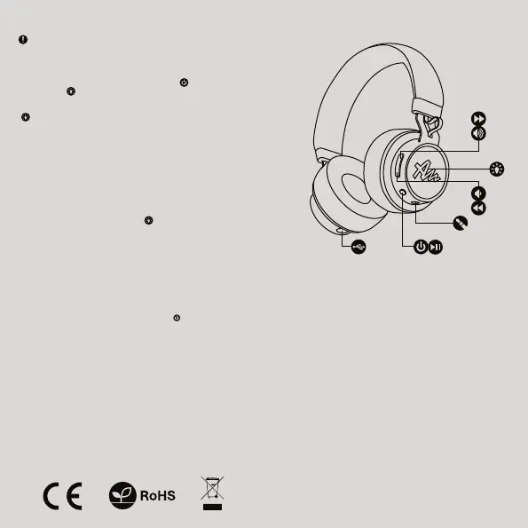 • Włącz słuchawki poprzez przytrzymanie przycisku przez 10 sekund, dioda