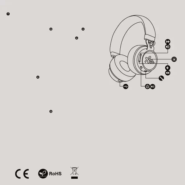 • Zapnite slúchadlá pridržaním tlačidla na 10 sekúnd, dióda LED začne