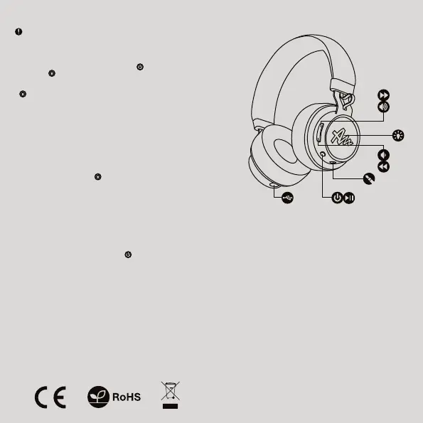 • Включить наушники, удерживая кнопку в течение 10 секунд,