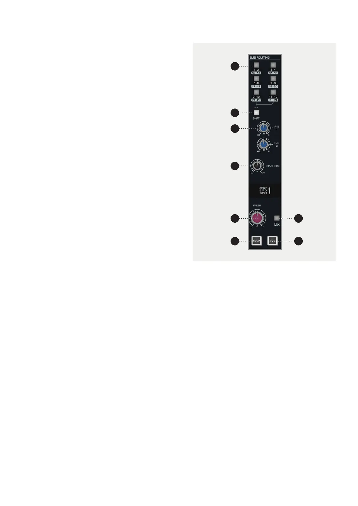 6 MIX sends the channel to the Mix Bus. To minimise