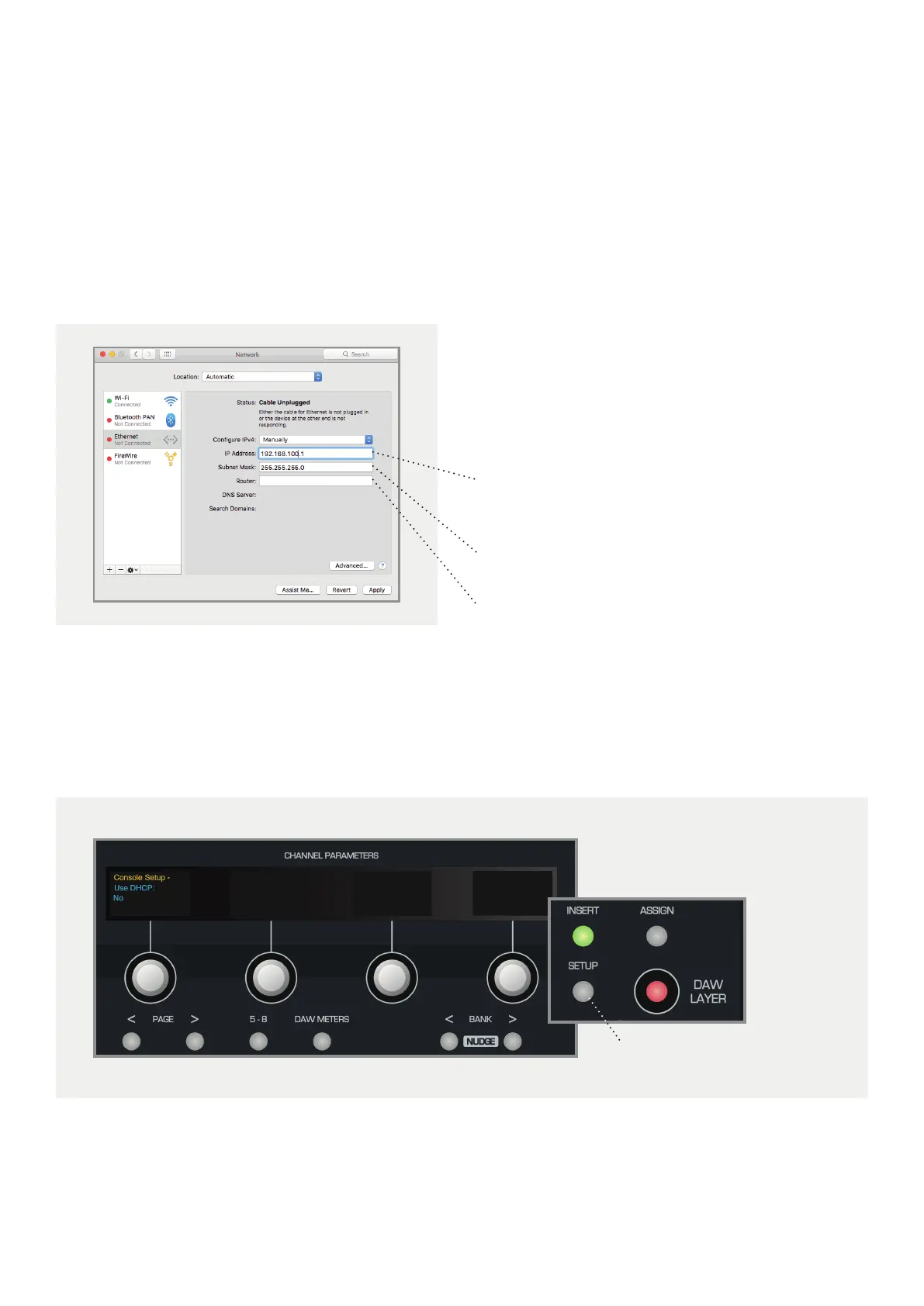 If you aren’t using DHCP to automatically set IP addresses, you must set them manually on the DLC and