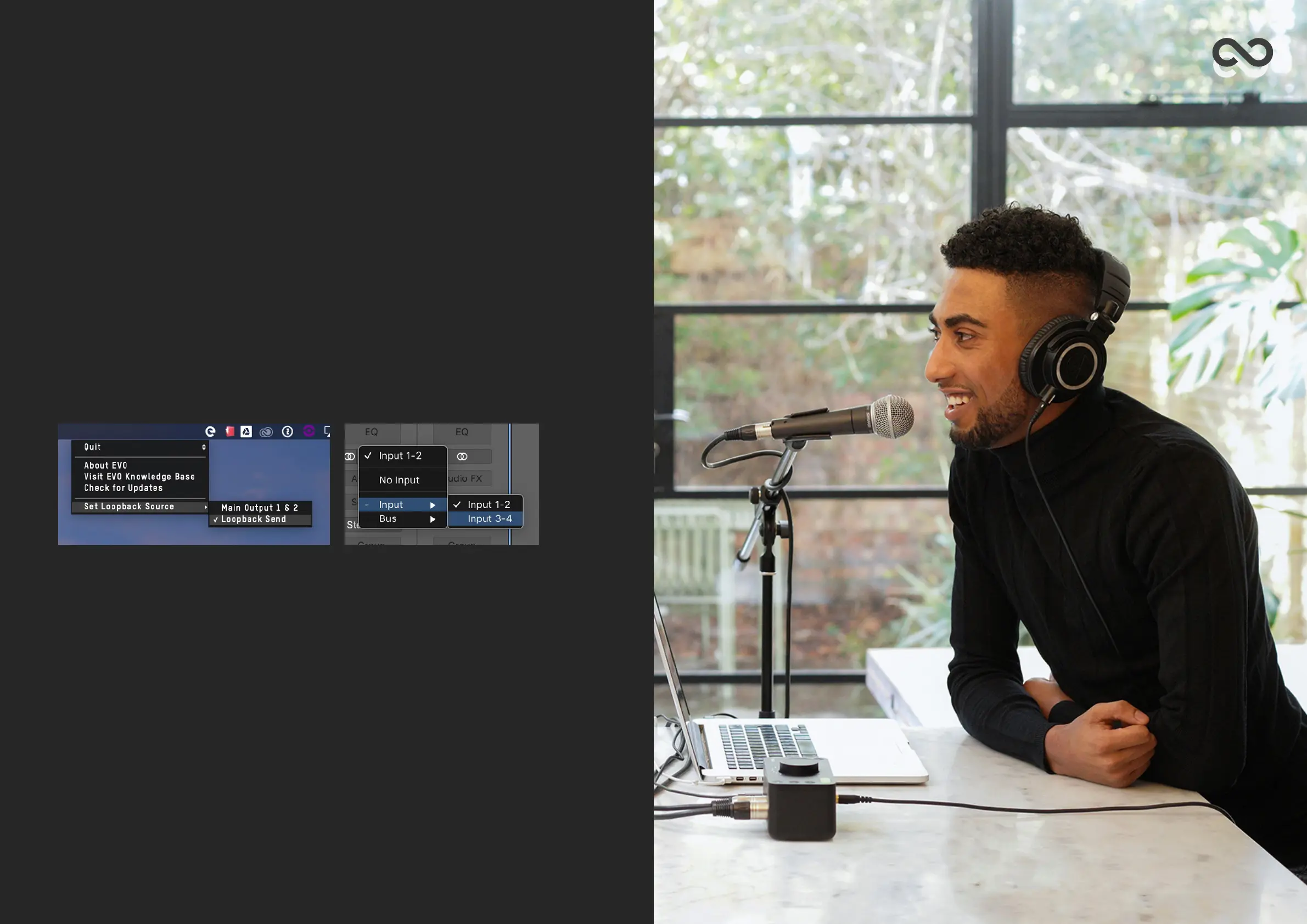 We need to tell EVO 4 to send the Audio Loop-back outputs to the