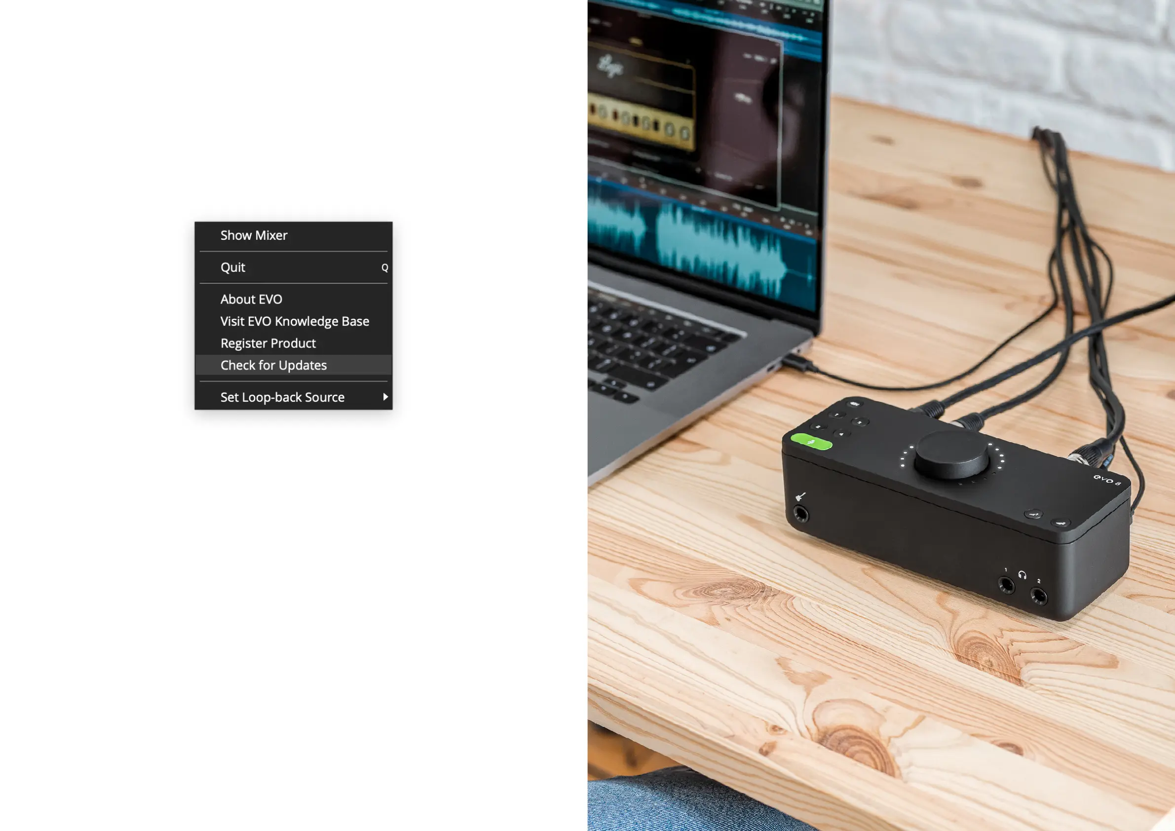 To update your rmware, go to the EVO Application menu and select Check