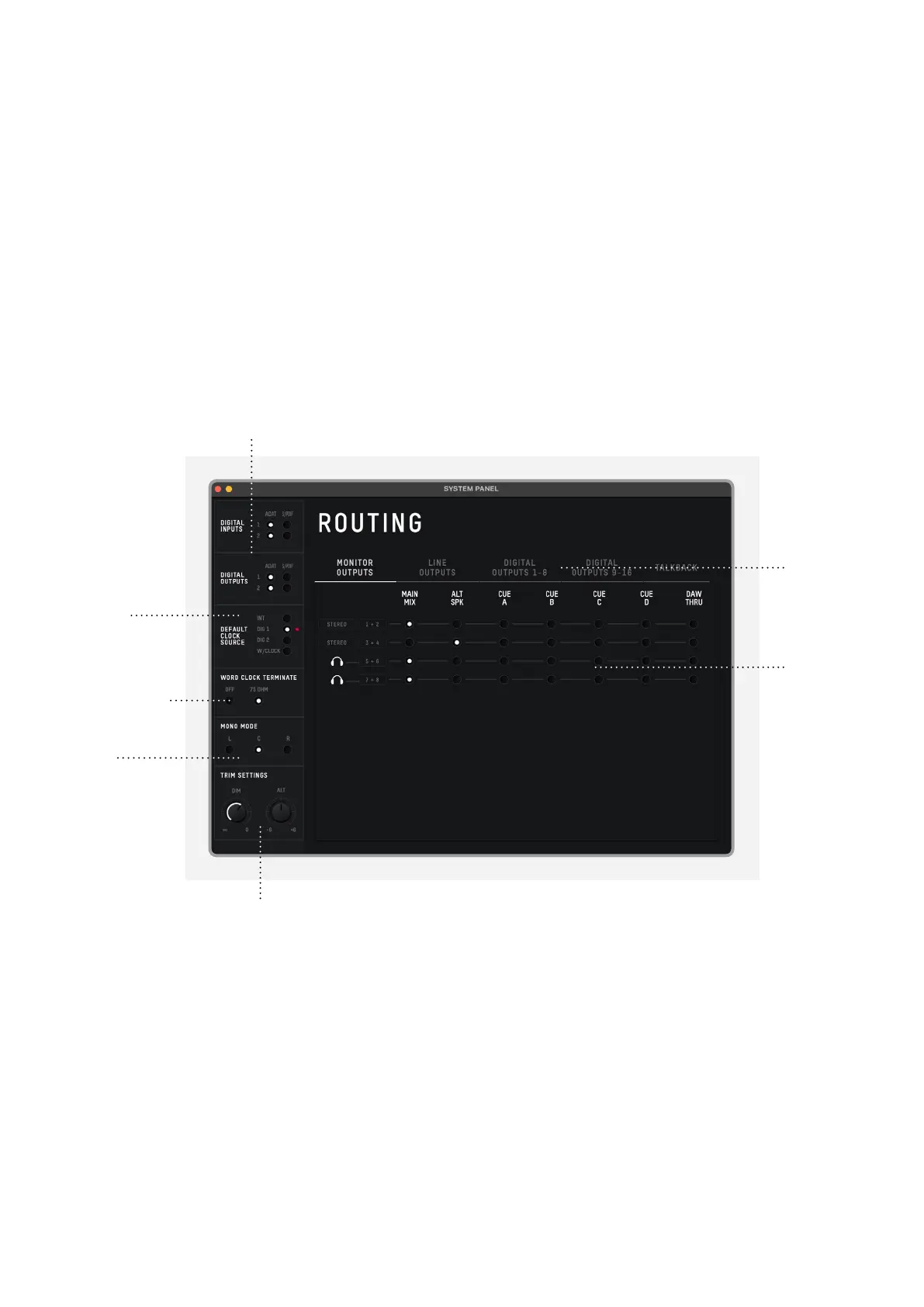 Audient iD48 - System Panel Features