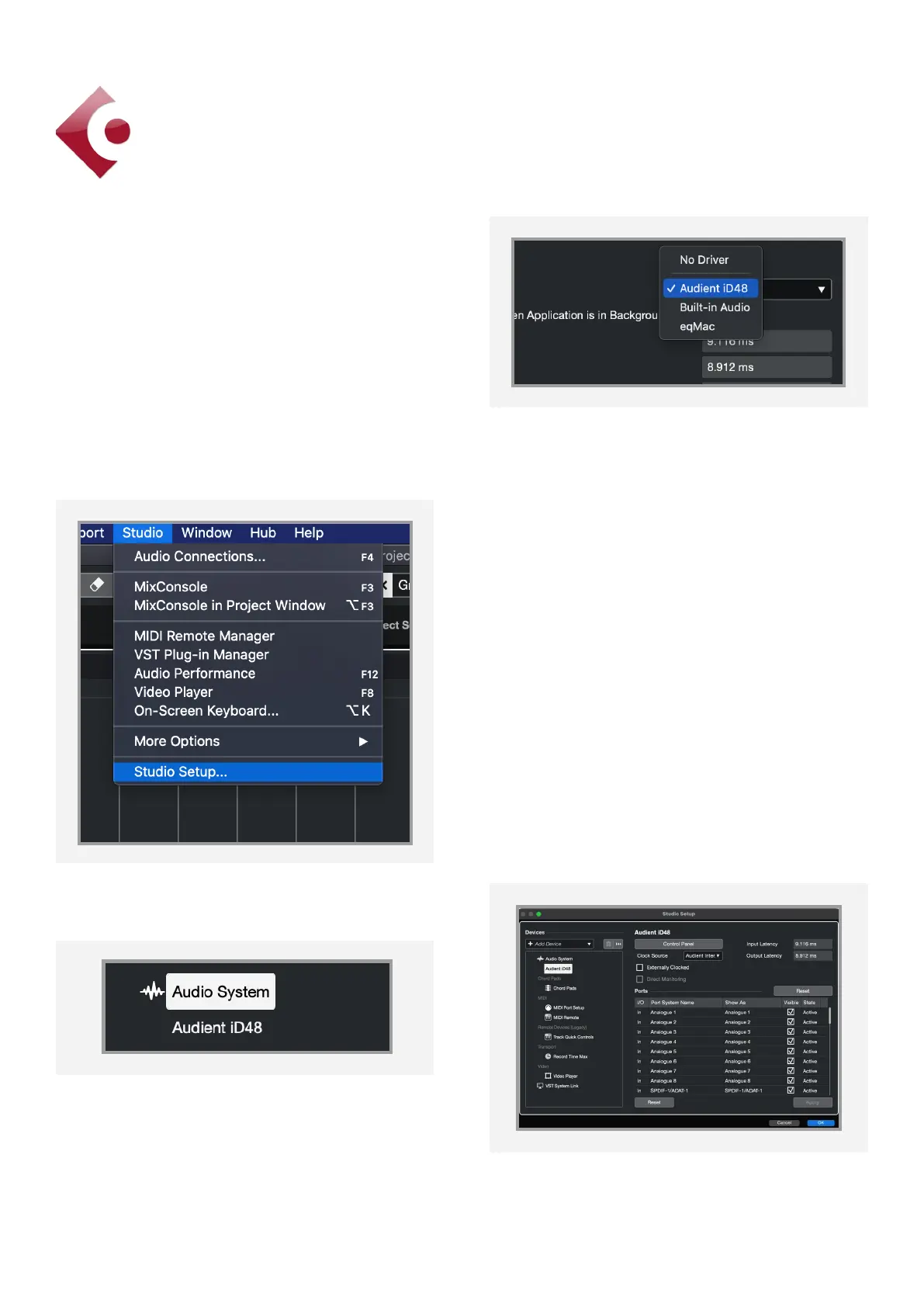 Select ‘Audient iD48’ in the dropdown menu