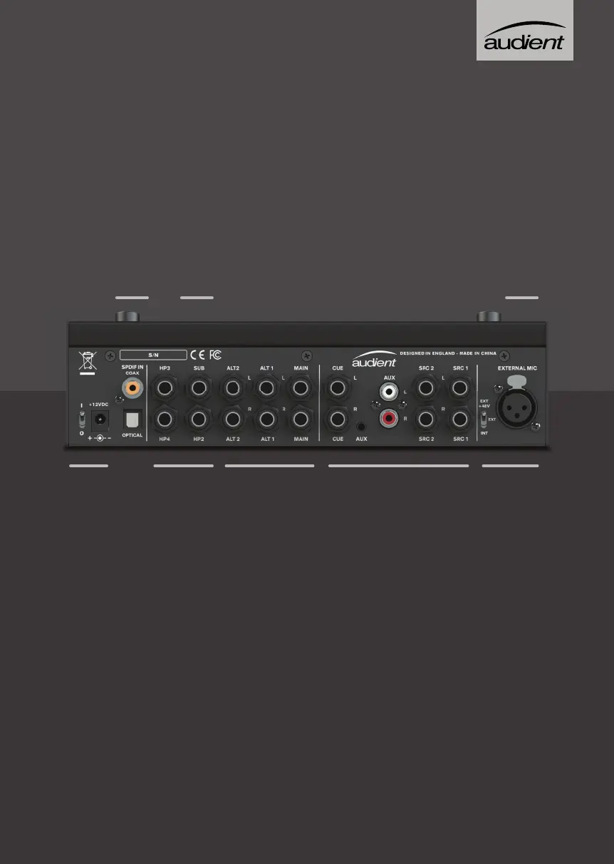 Audient Nero - Rear Panel Connections; SPDIF and Sub Output; Power, Headphone, and Speaker Outputs; Analogue Input and Talkback Mic Selector