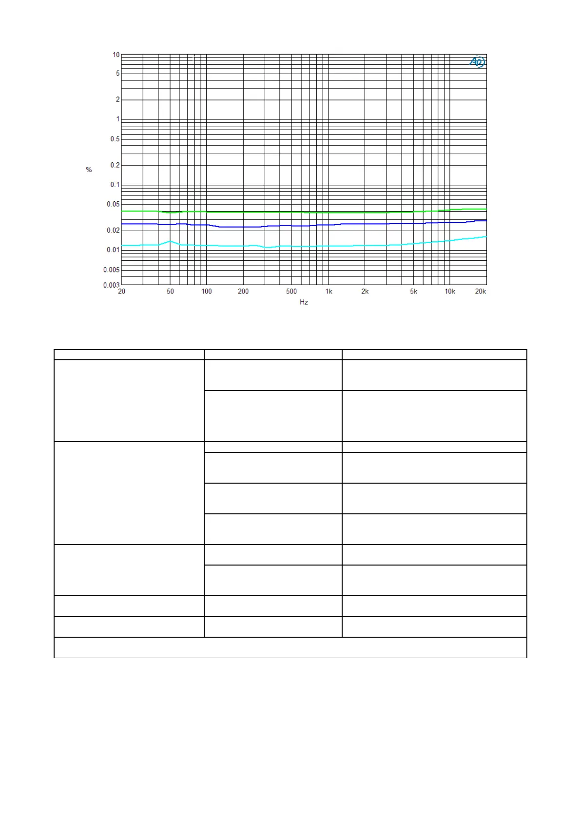 T.H.D + N rispetto alla frequenza su 8Ω classe A, 80kHz banda di misura. (1W curva BLU, 10W curva CELESTE e 40W curva VERDE)